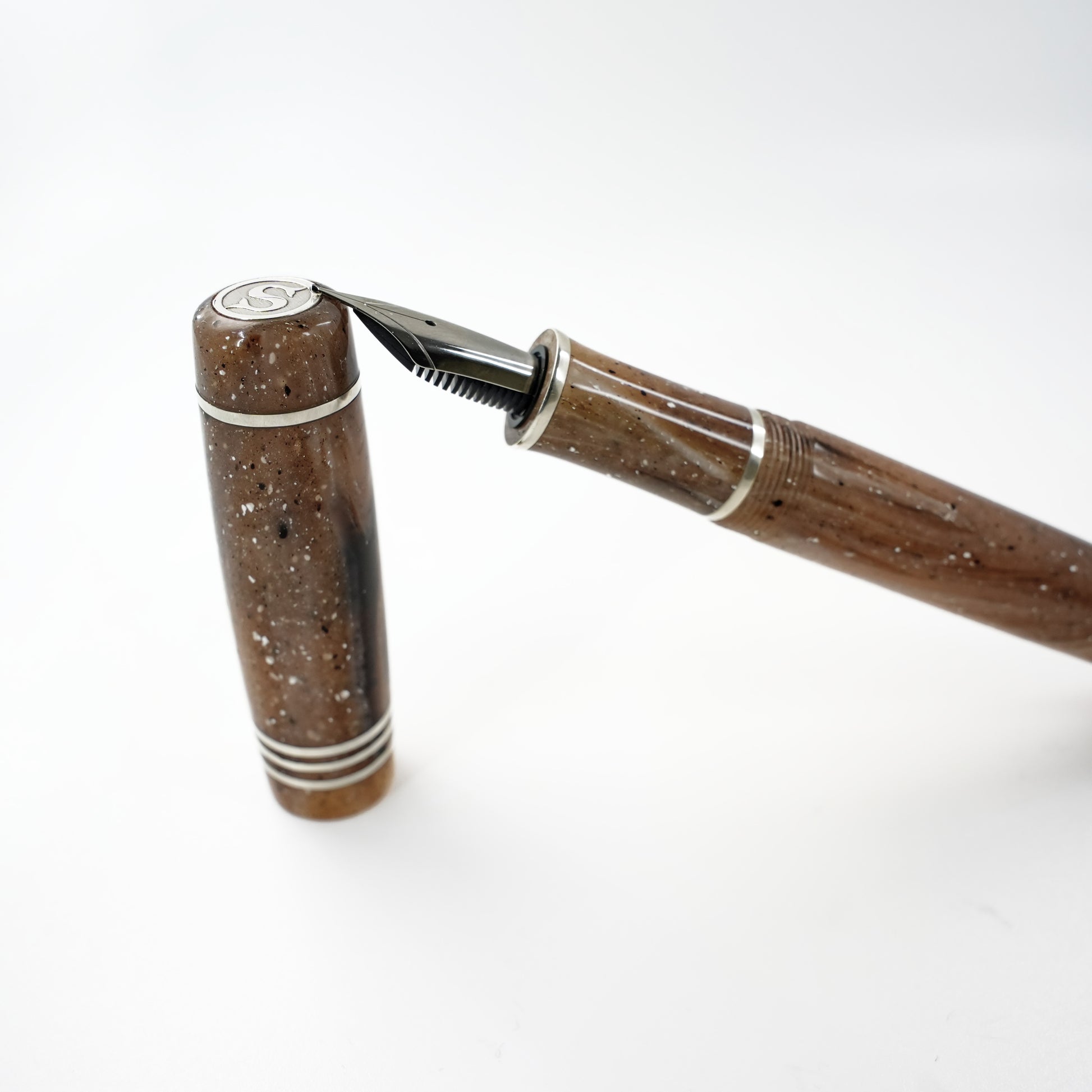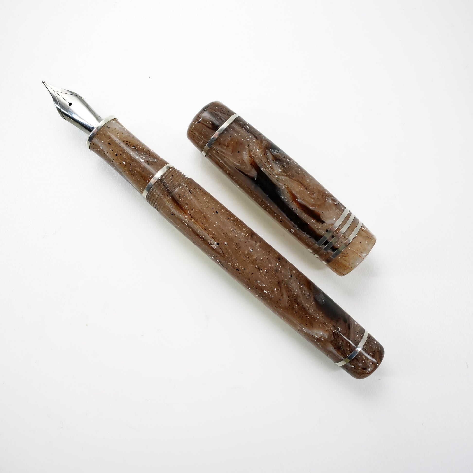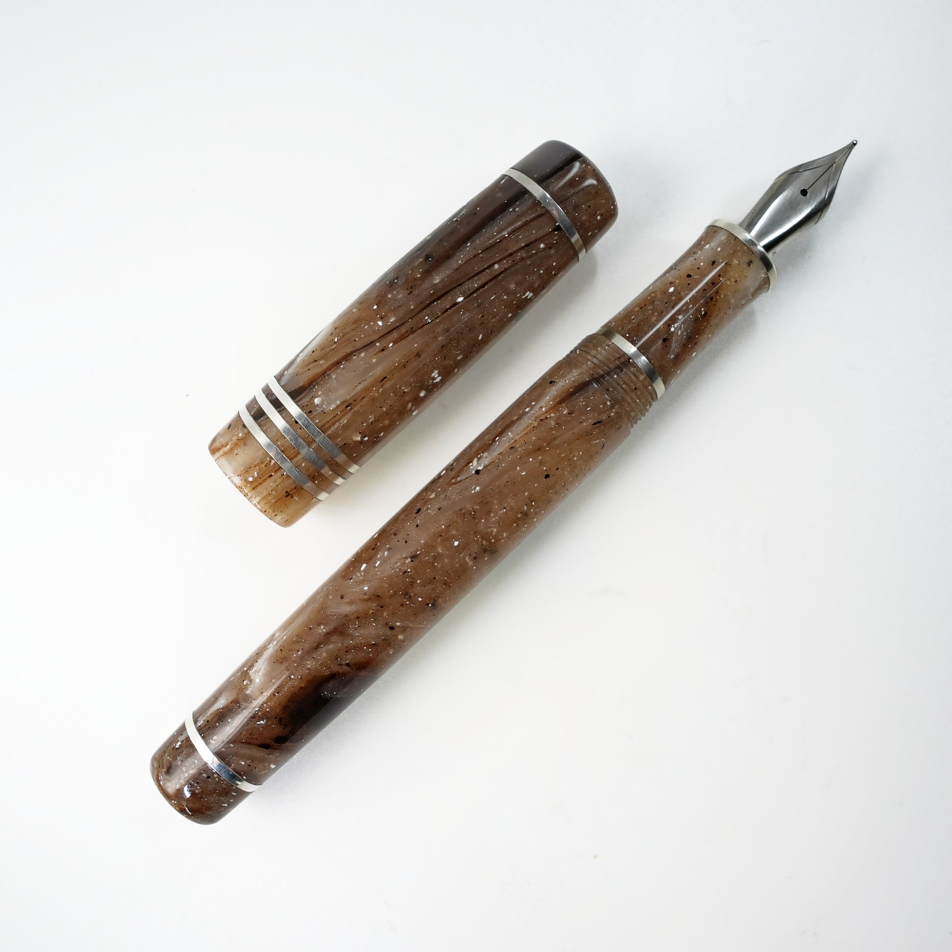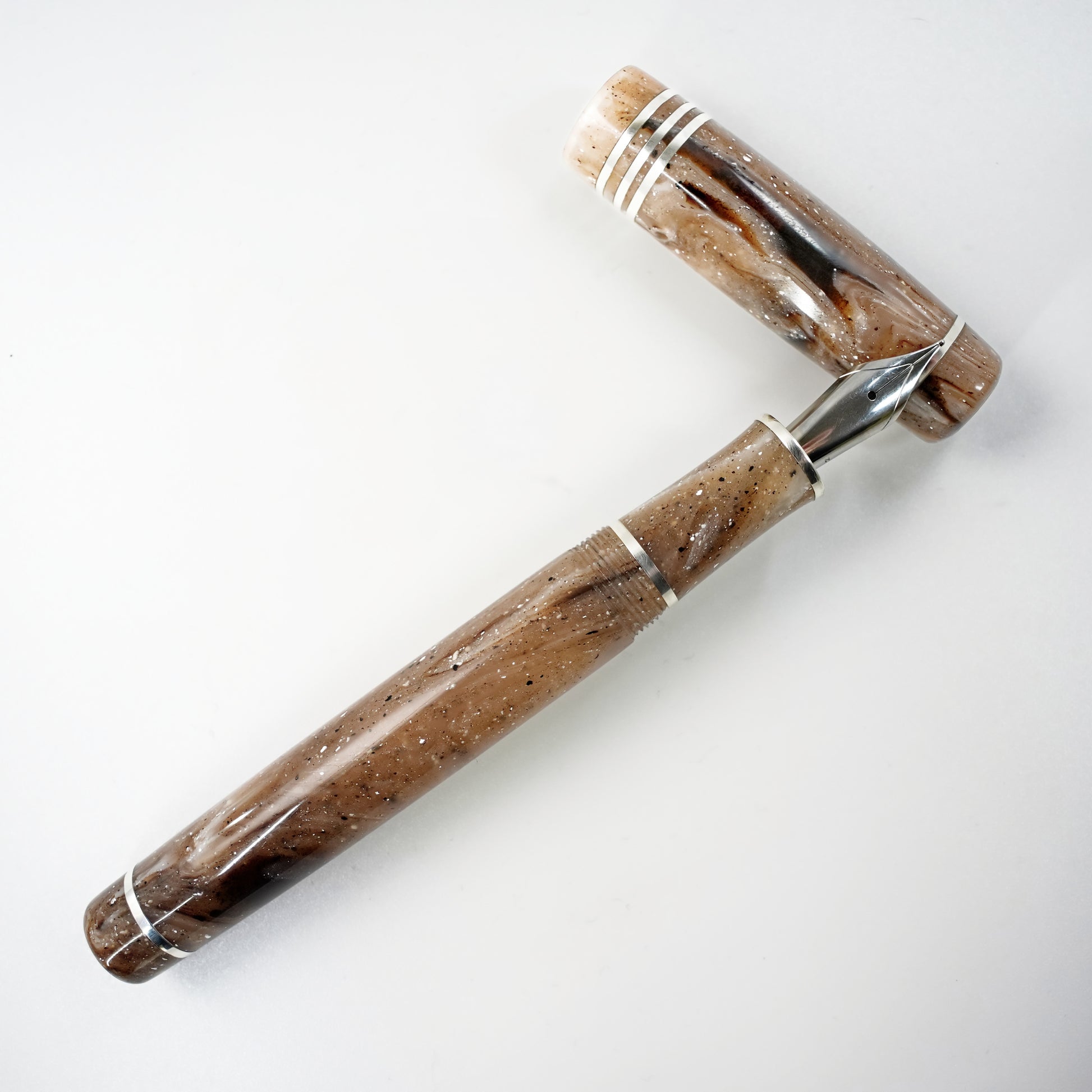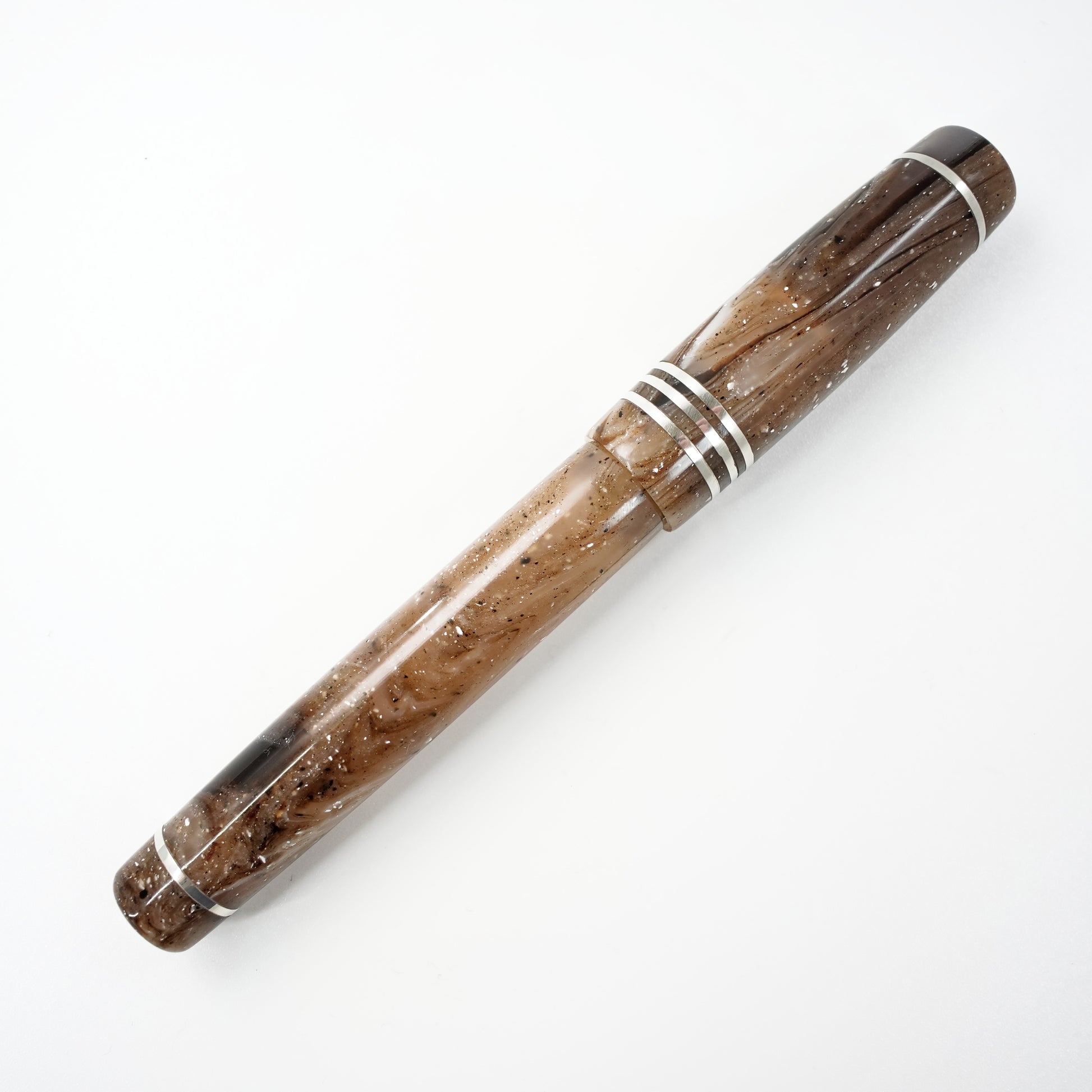 Custom order for Silke, Strata Quartz 14 stemless with bands of argentium silver.