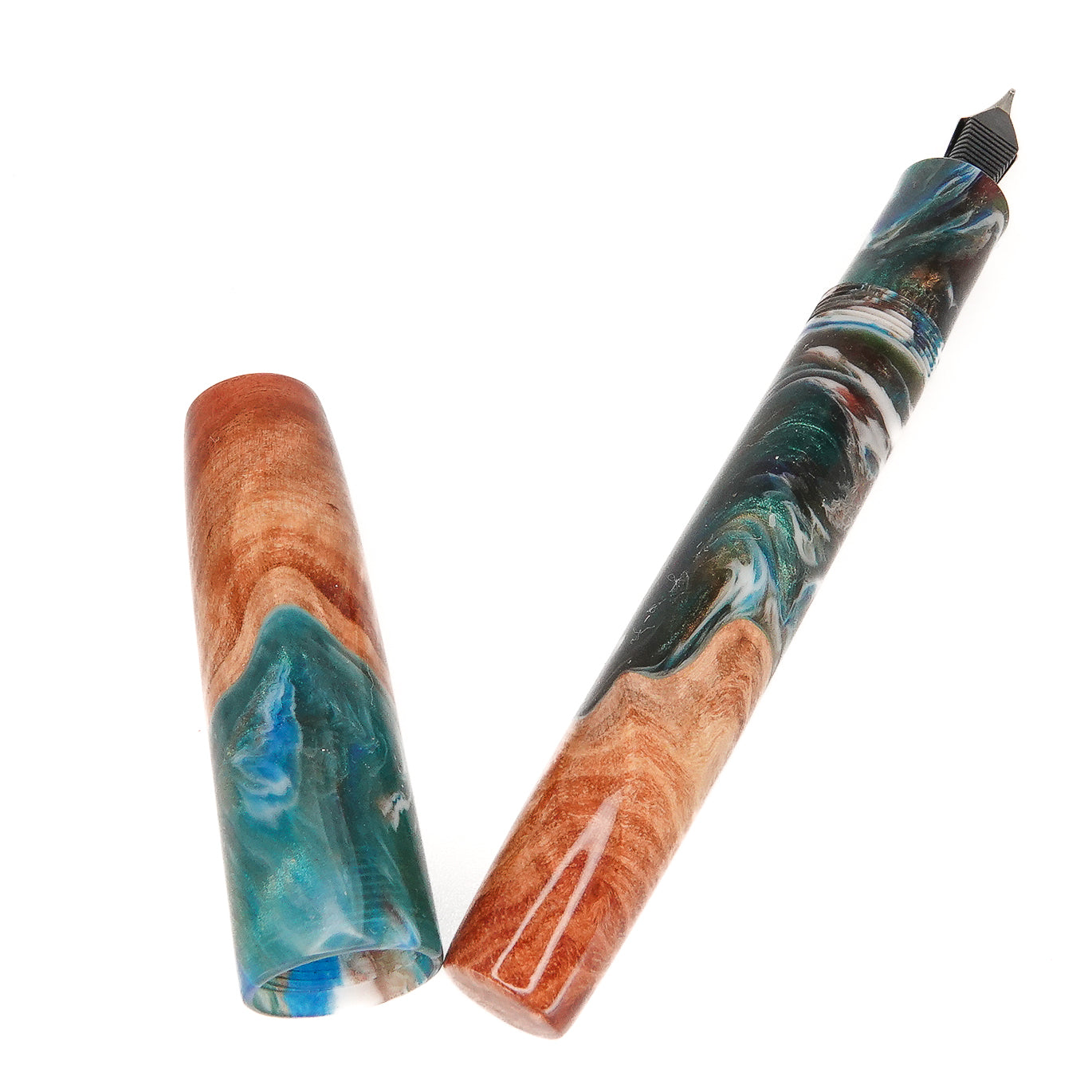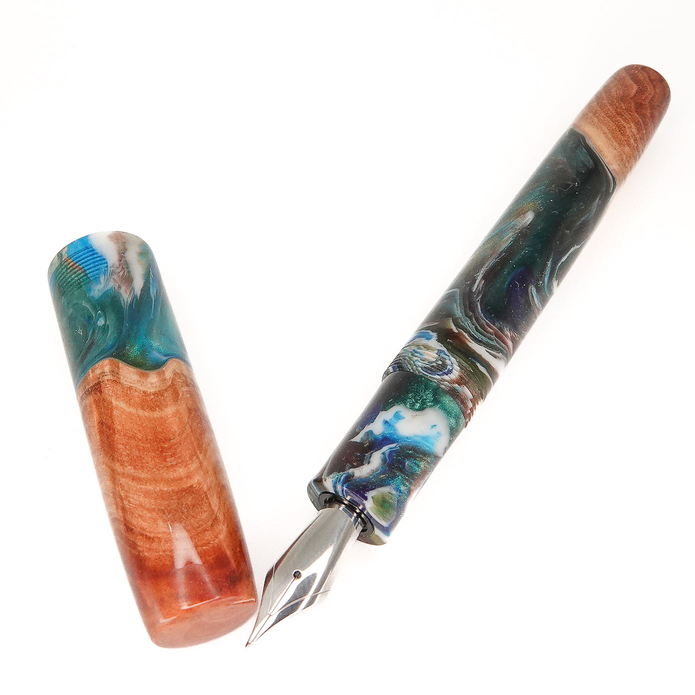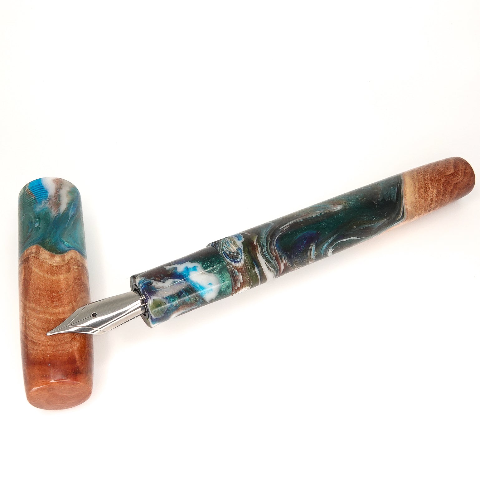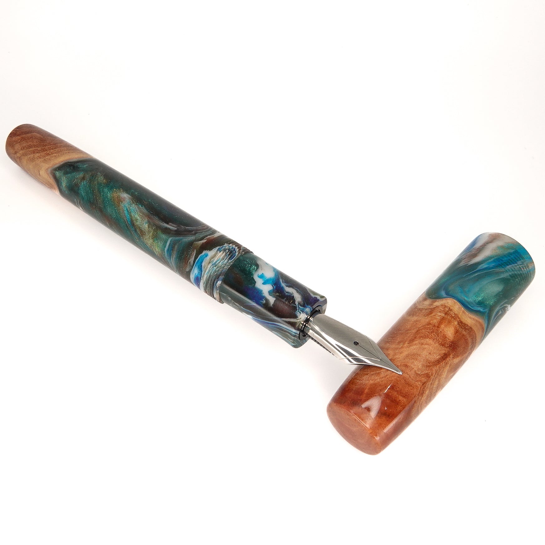 This beautiful Red Mallee Burl wood offers a completely unique and impressive appearance, each pen incorporates the woods natural identity and features with no two ever the same. This pen is one of a kind, completely hand turned, including the grip / nib section and triple start thread, all done by myself in my workshop. No pen kit has been used. The level of craftmanship, time involved and quality is reflected in the price. I never make two pens the same.
