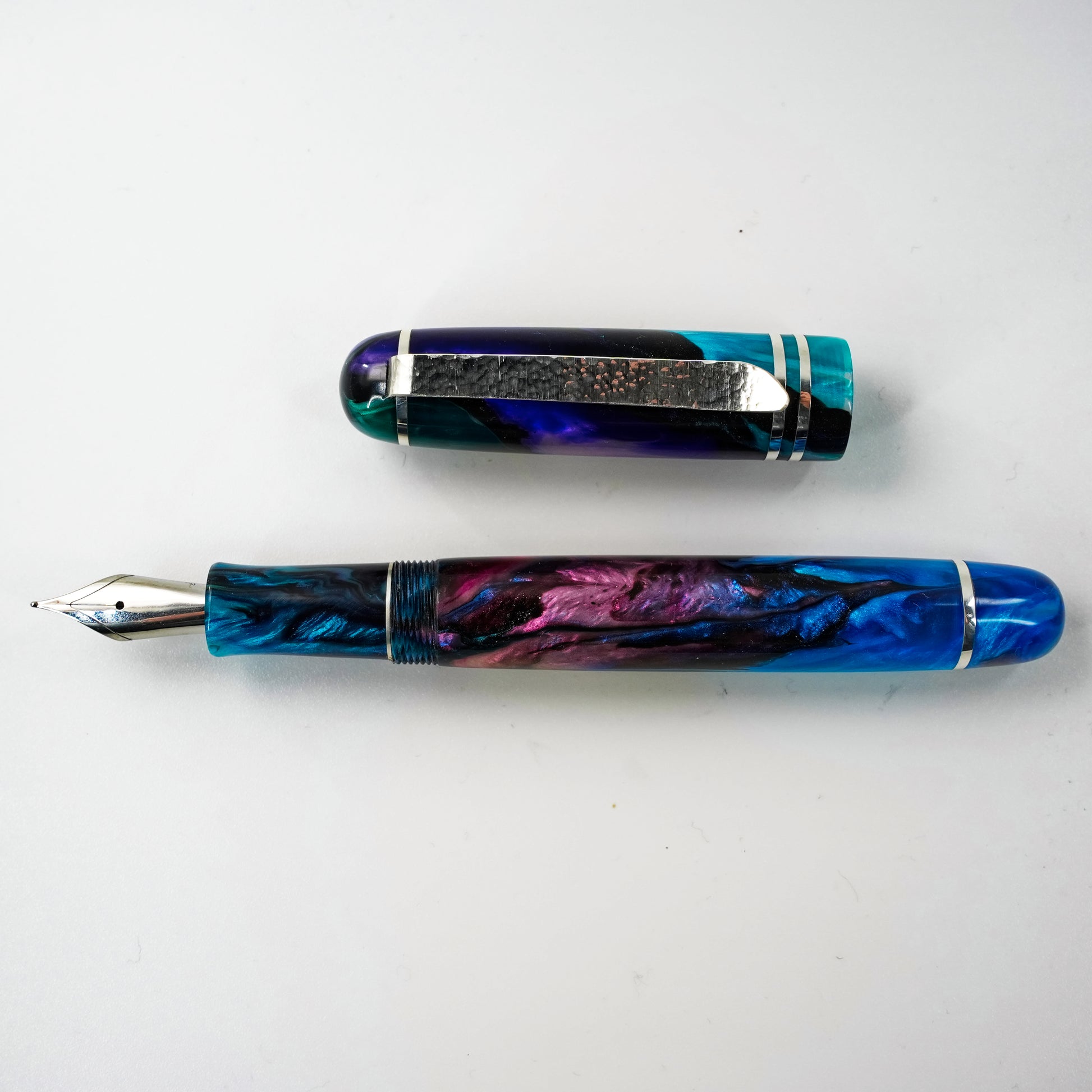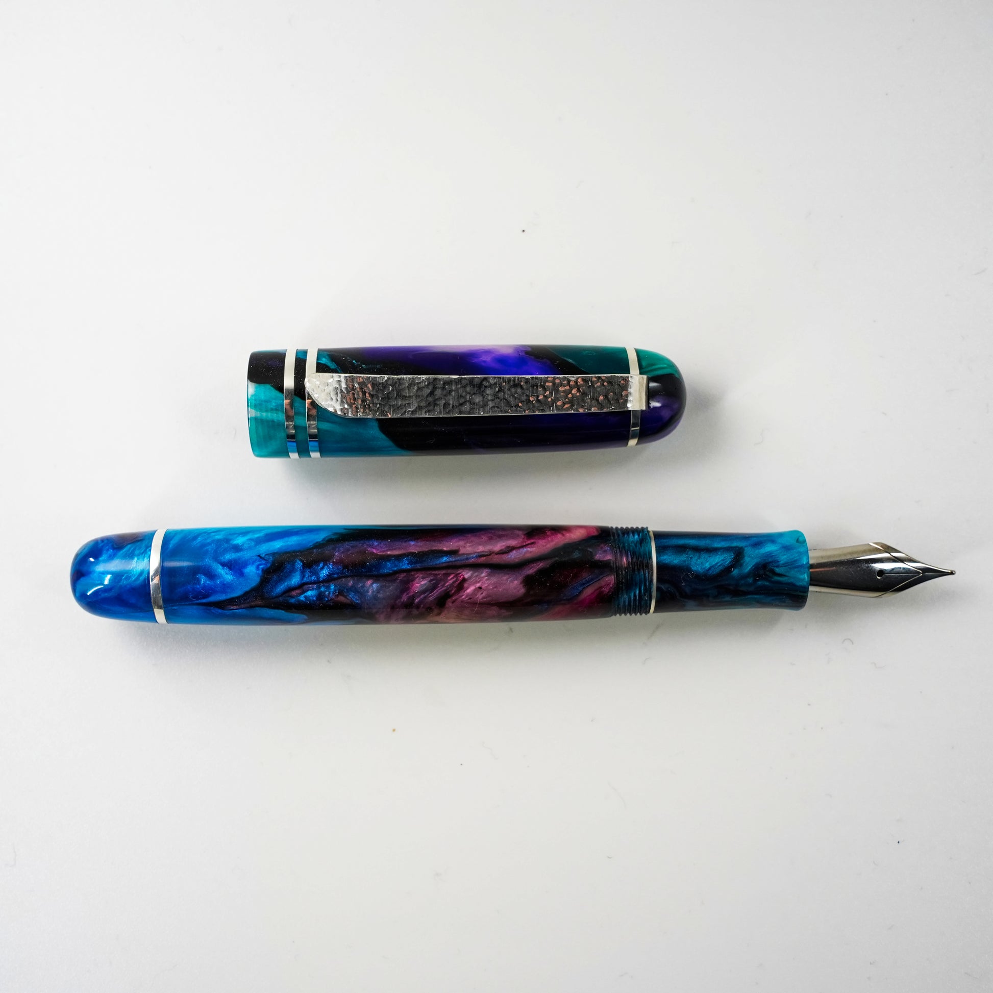 Experience unparalleled craftsmanship with the Silver Series 14 by Silverburl Pens. Meticulously handmade, this fountain pen features a polished steel Jowo size 6 nib, available in multiple tip sizes to suit your writing style. Measuring 145mm including the cap, with a balanced diameter for comfortable, extended use, it combines functional design with elegance. The pen is crafted from premium Argentium .940 silver, prized for its exceptional brightness, enhanced durability, and superior tarnish resistance compared to traditional sterling silver. Its natural antibacterial properties and nickel-free composition make it ideal for users with sensitive skin or allergies. The Silver Series 14 redefines luxury writing, merging aesthetic refinement with lasting performance.