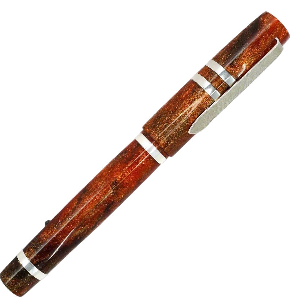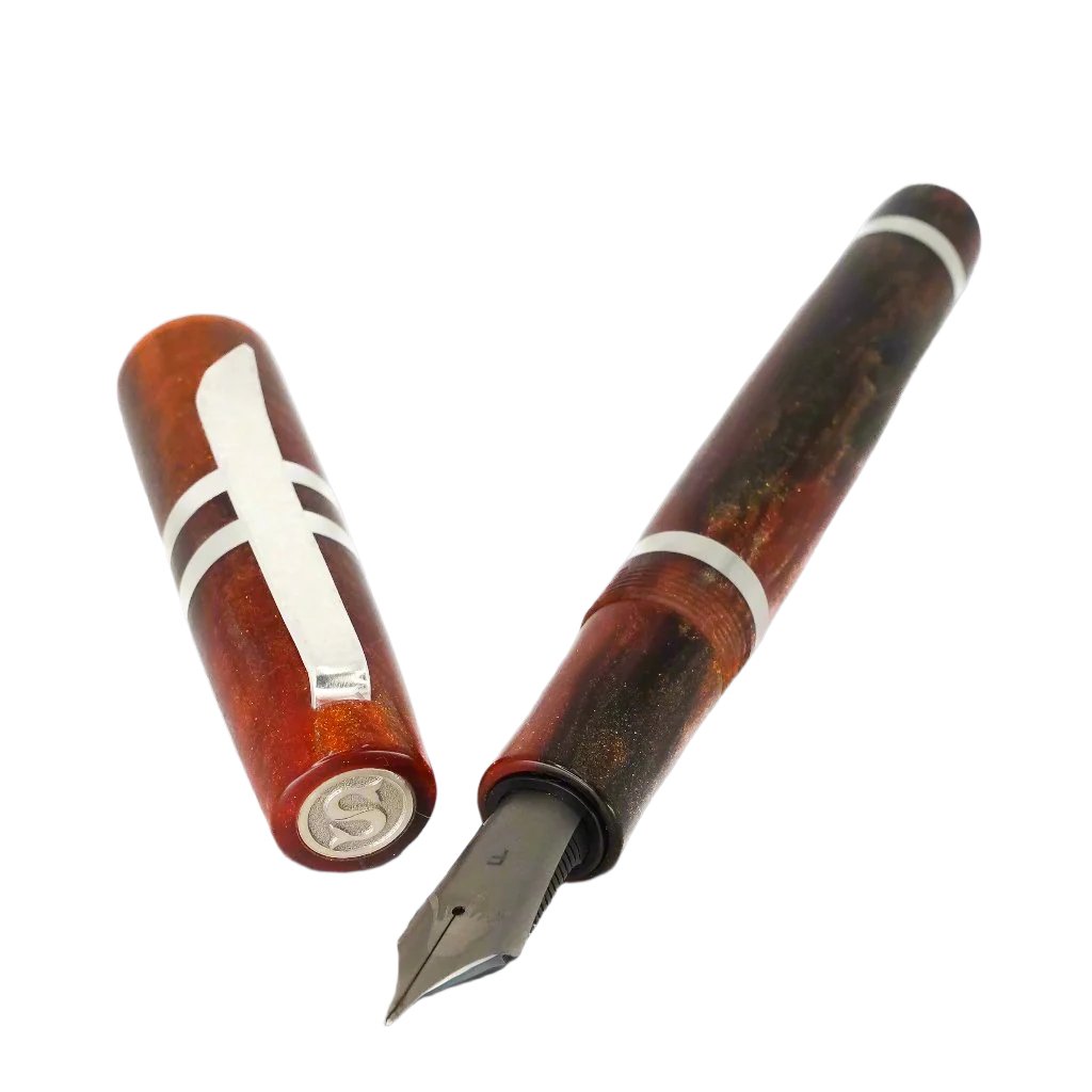 Step up your writing game with the size eight nib fountain pen. This pen from the Silver series is designed for the discerning writer who appreciates both style and functionality. this pen is perfect for slipping into your pocket or bag, or displaying on your desk. The pen is fitted with a size 8 Magna Carta nib and Schmidt K5 ink converter, ensuring a smooth and effortless writing experience. The nib comes in the tip size of Medium but please contact for alternatives Contact john@silverburlpens.com for more information and pricing of other nibs. Pen Size: Overall length including cap 145m/m, nib tip to body end 135m/m, body diameter 15m/m, body to cap thread 15m/m triple start, cap diameter 16.5m/m, section diameter at narrowest point 13.5m/m. Indulge in the art of writing with our luxury Silver series pen. The sleek and slender 15mm body is designed for ease and elegance, making it the perfect accessory for your desk or on-the-go. The size 8 Semi Flex Bock nib and Schmidt K5 ink converter ensure a smooth and effortless writing experience. Fine-tuned for the discerning writer, this pen is available in various nib sizes. Contact us for more information and pricing options. Pen size: overall length including cap 145m/m, nib tip to body end 135m/m, body diameter 15m/m, body to cap thread 15m/m triple start, cap diameter 16.5m/m, section diameter at narrowest point 13.5m/mPLEASE NOTE THIS PEN IS FITTED WITH A NIB TIP SIZE IN THE DESCRIPTION CONTACT IF YOU NEED A DIFFERENT NIB OR TIP SIZE!!!!