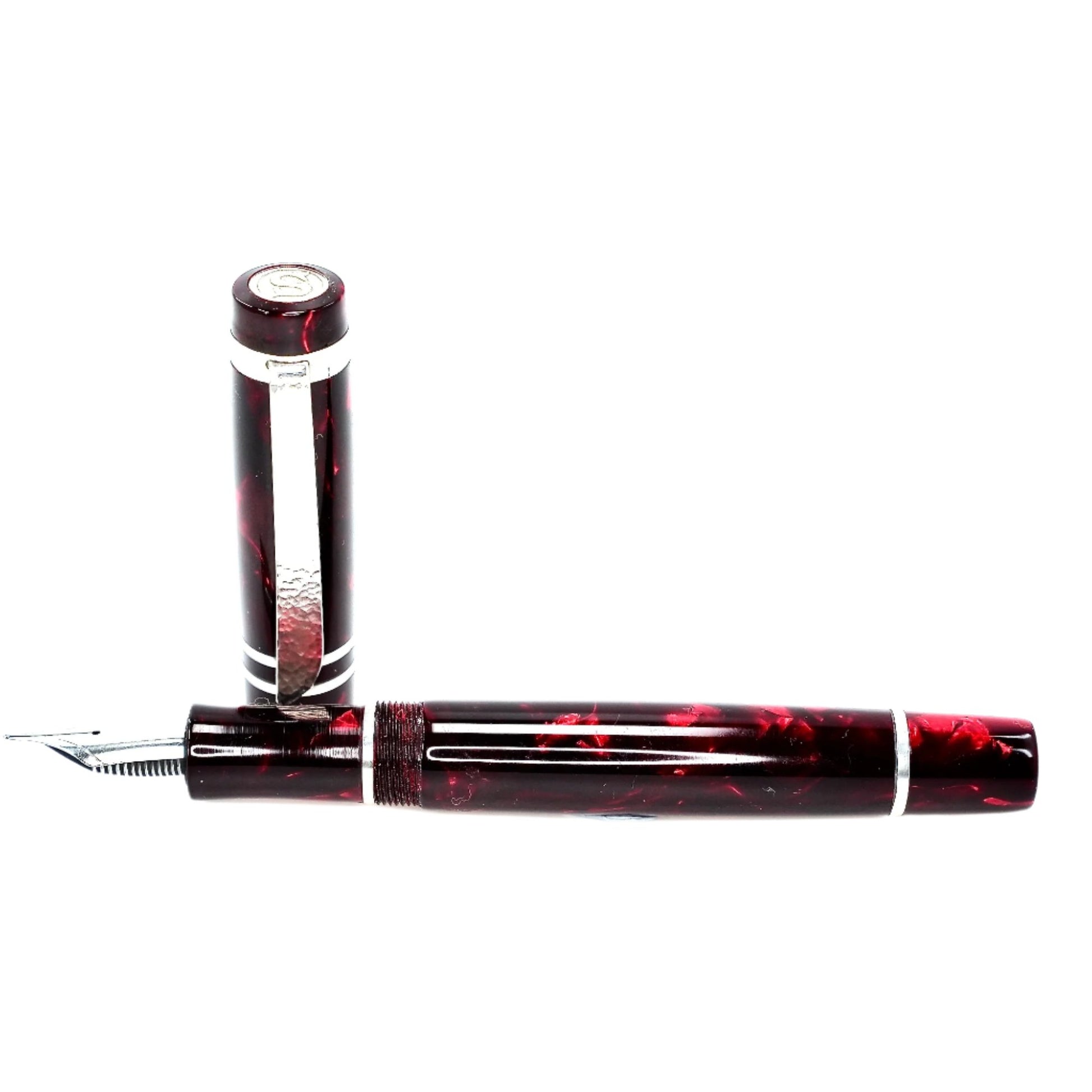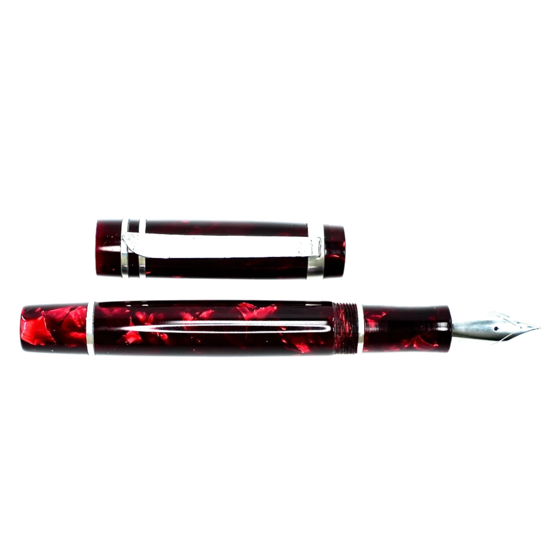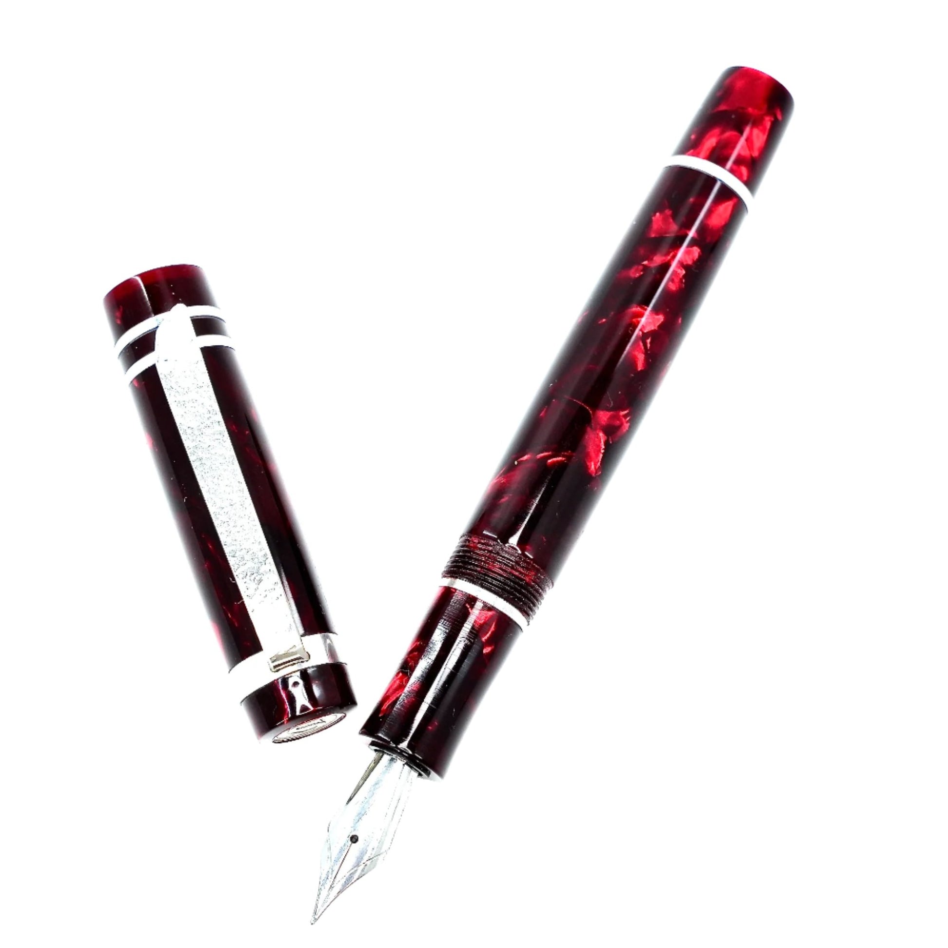 Indulge in the luxurious elegance of this Italian Celluloid pen enjoy the impeccable craftsmanship of Silverburl pens. Our unparalleled commitment to excellence and longevity is evident in every detail of this writing instrument, from the sophisticated polished steel Jowo nib size 6 to the array of nib tip options available. Measuring 145m/m in length with the cap, and 135m/m from nib to body end, with a body diameter of 15m/m and a 14m/m thread, and a cap diameter of 16m/m, this pen offers a perfectly comfortable writing experience. But what truly sets this pen apart is the use of Argentium .940 silver, renowned for its superior luster and durability compared to traditional .925 sterling silver. In addition to being highly resistant to tarnishing, it also boasts antibacterial properties and is free of nickel, making it a perfect choice for those with allergies or sensitive skin. Elevate your writing to a whole new level with this exceptional fountain pen.