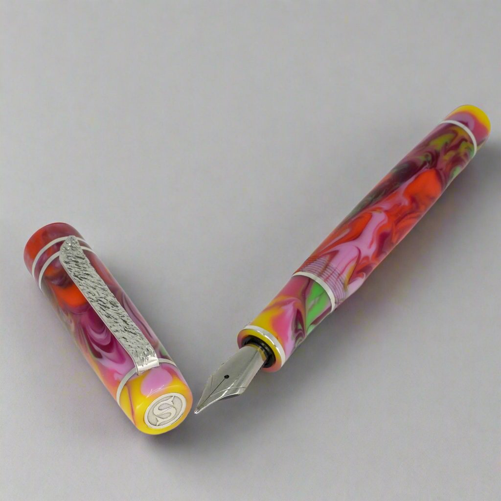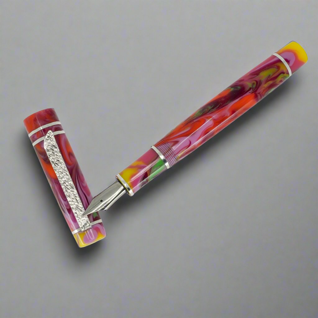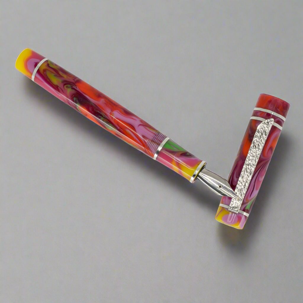 Experience the exquisite beauty and exceptional craftsmanship with Silverburl pens. Our commitment to quality and durability is reflected in every aspect of this pen, from the elegant polished steel Jowo nib size 6 to the option to choose from various nib tip sizes. At 145m/m long including the cap and 135m/m from nib to body end, with a body diameter of 15m/m and a 14m/m thread, and a cap diameter of 16m/m, this pen is perfectly sized for comfortable writing. However, what truly makes this pen stand out is the use of Argentium .940 silver, known for its superior brightness and durability compared to traditional .925 sterling silver. Not only is it highly tarnish resistant, but it also has antibacterial properties and is free from nickel, making it an ideal choice for those with allergies or sensitive skin. plus one 1.1 stub nib.