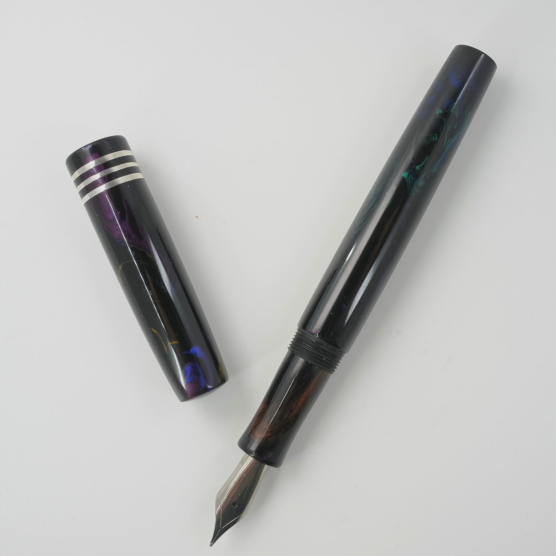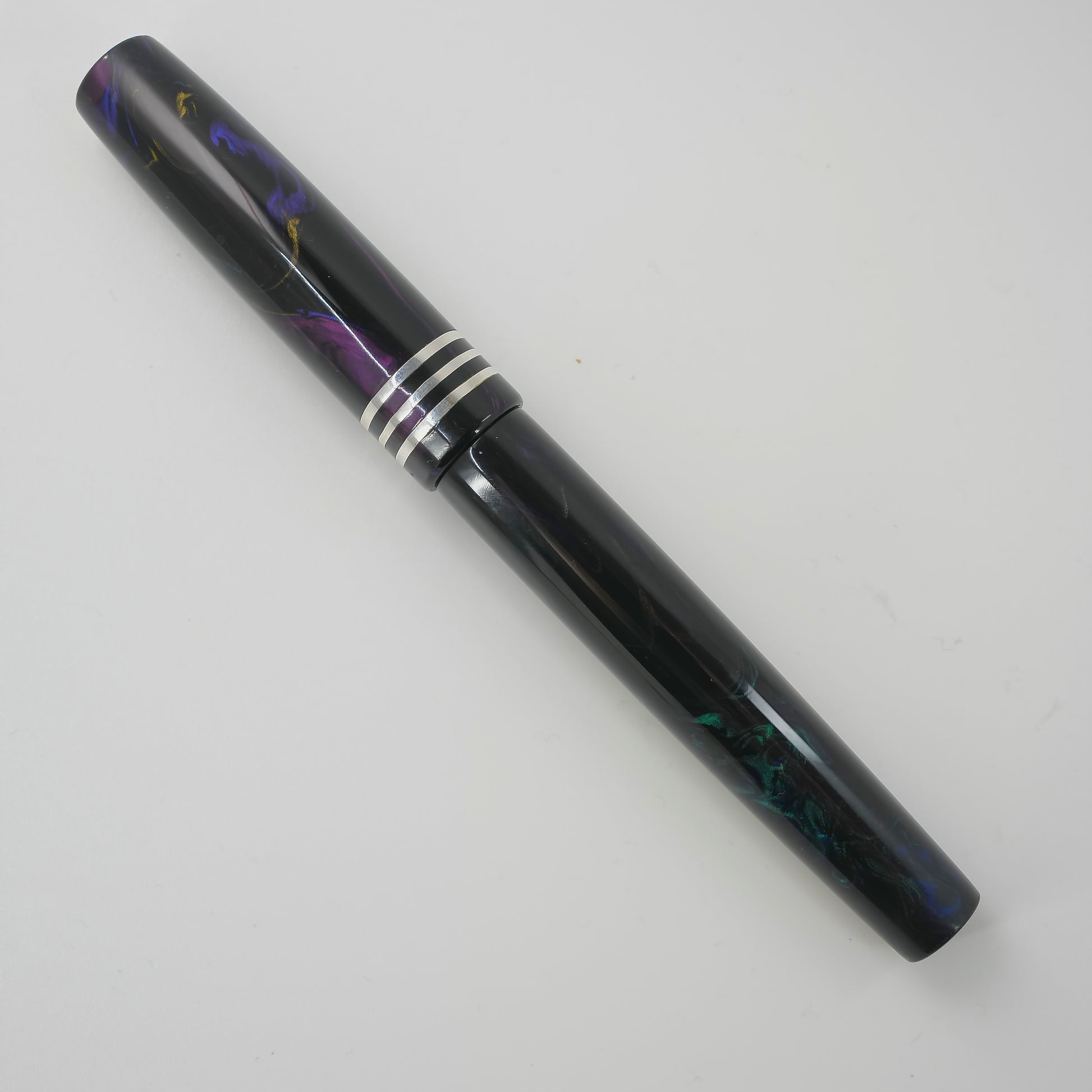 Presenting the stunning 13mm pen from Silver Burl Pens. Part of the Simply Elegant series, this pen is made for writers who appreciate both comfort and style. Its sleek design is perfect for carrying in a pocket or bag, or displaying on a desk. Each pen is carefully crafted to the highest standards and includes a size six Jowo nib and Schmidt K5 ink converter. The polished steel nib is offered in different tip sizes, and other nib options are available.