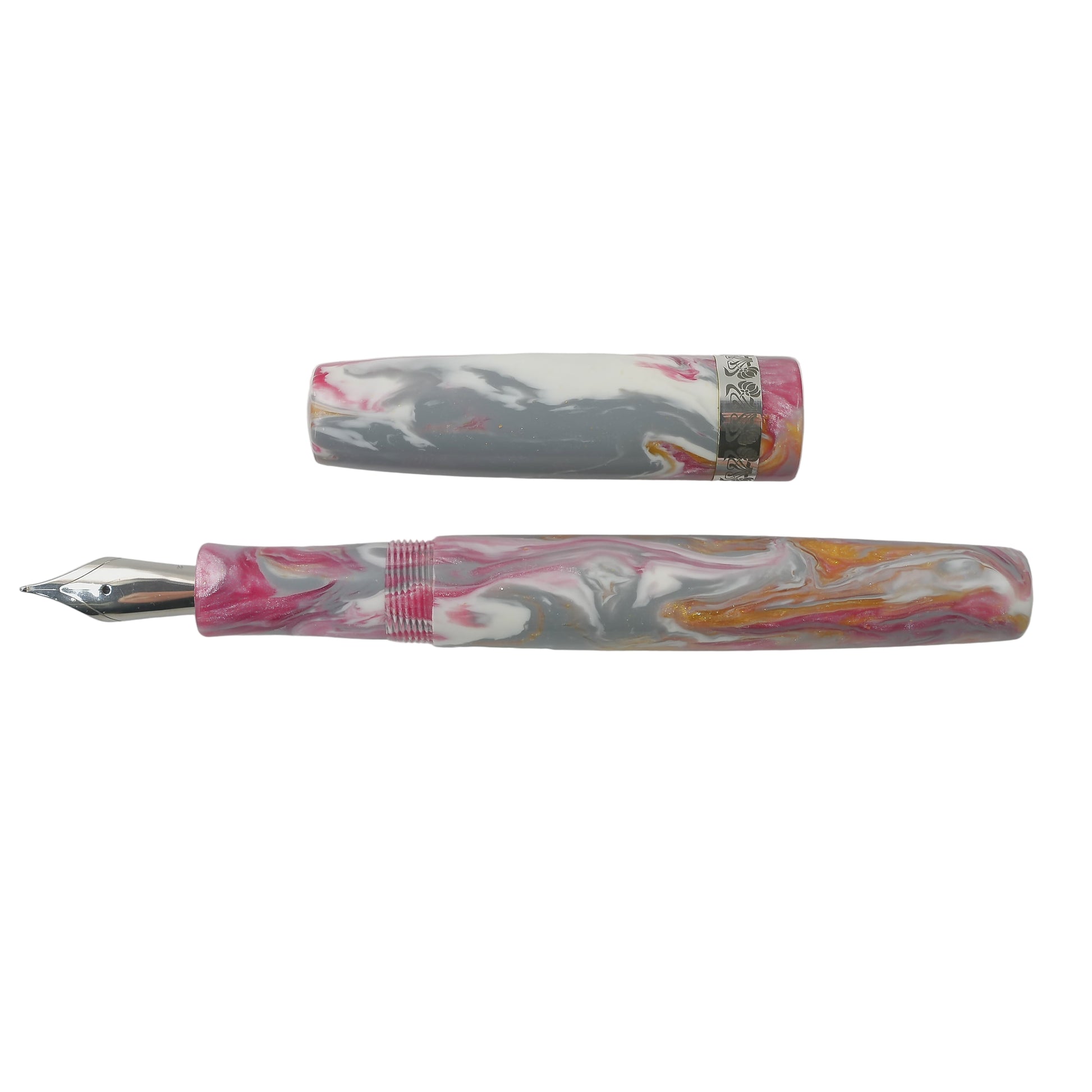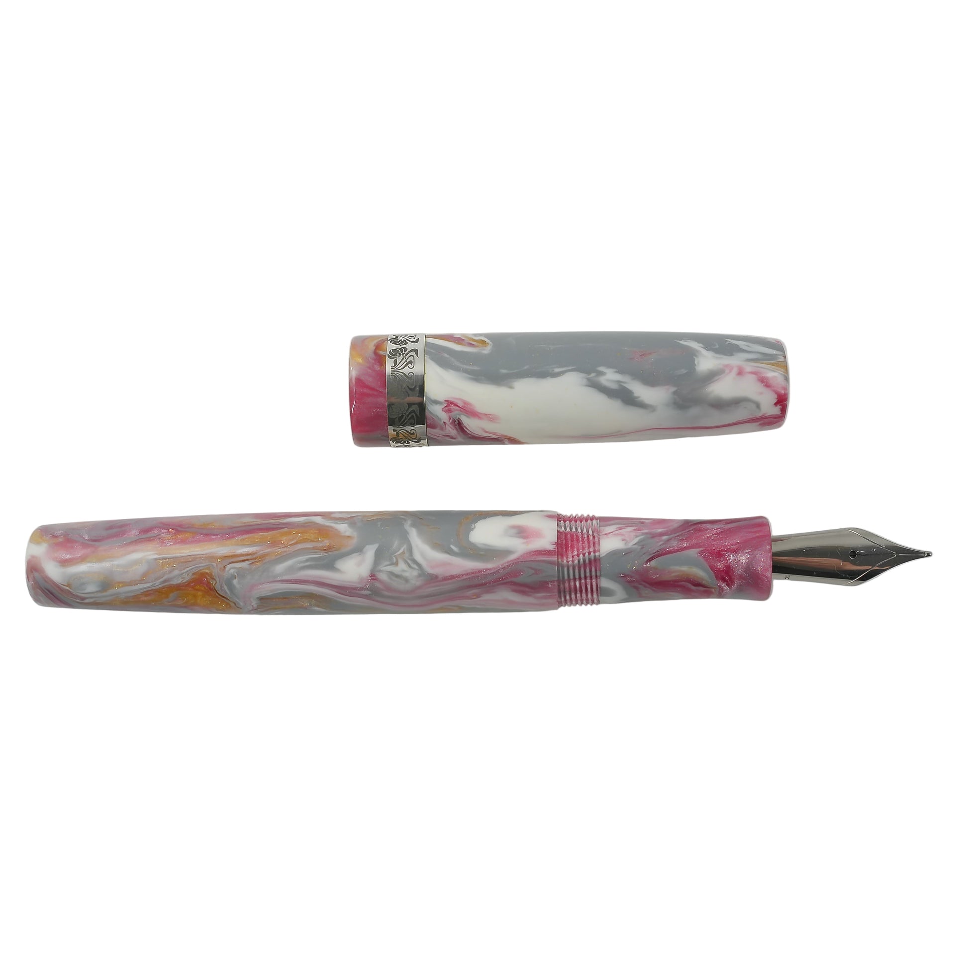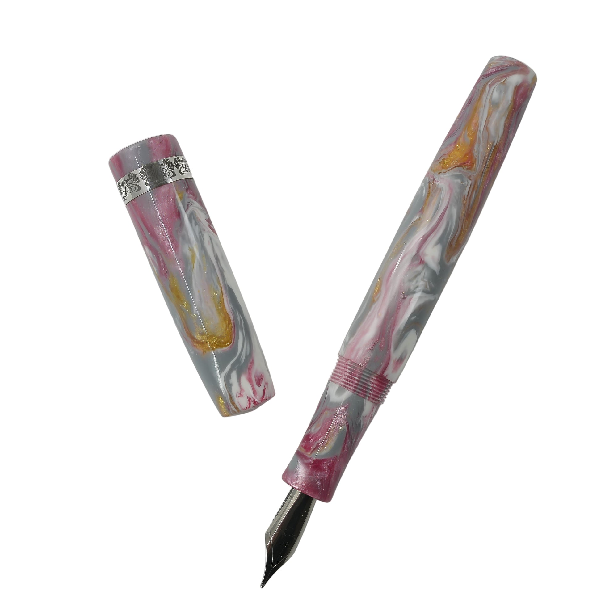 Presenting the stunning Stepless 14mm pen from Silver Burl Pens. Part of the Simply Elegant series, this pen is made for writers who appreciate both comfort and style. Its sleek design is perfect for carrying in a pocket or bag, or displaying on a desk. Each pen is carefully crafted to the highest standards and includes a size six Jowo nib and Schmidt K5 ink converter. The polished steel nib is offered in different tip sizes, and other nib options are available.