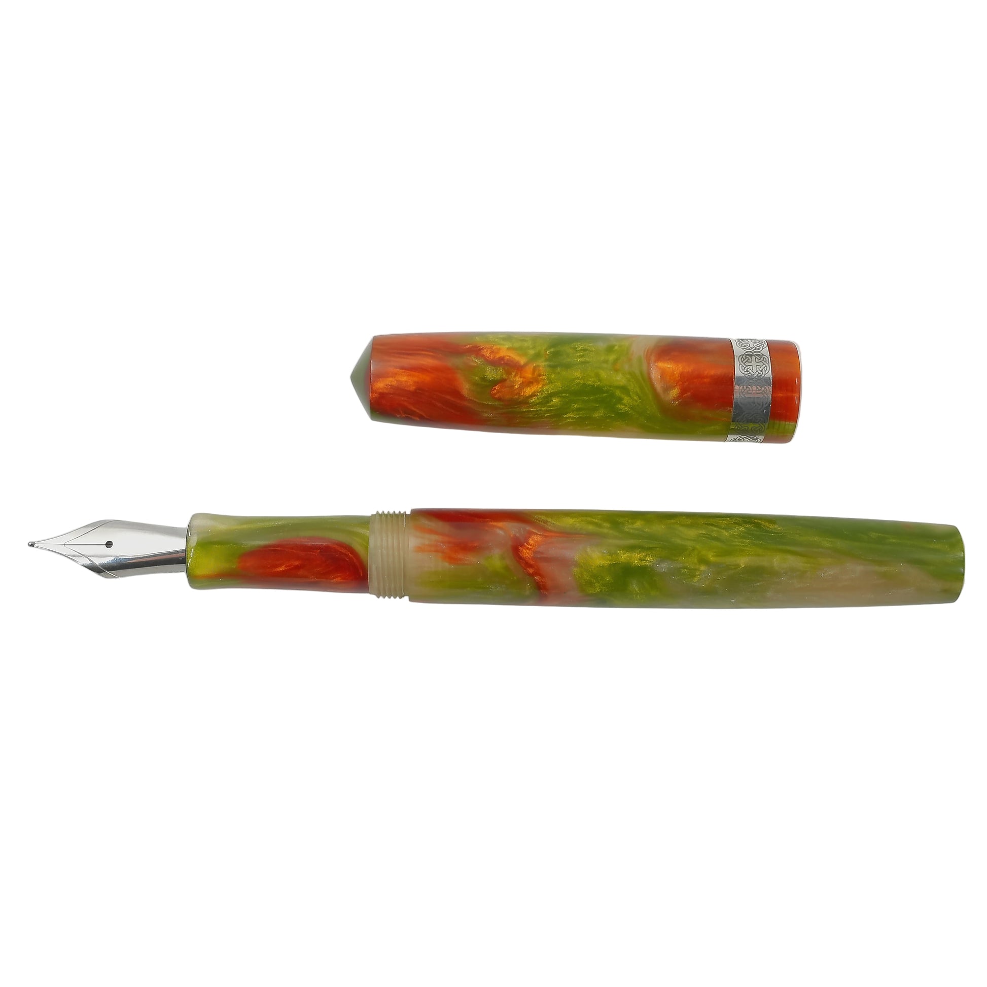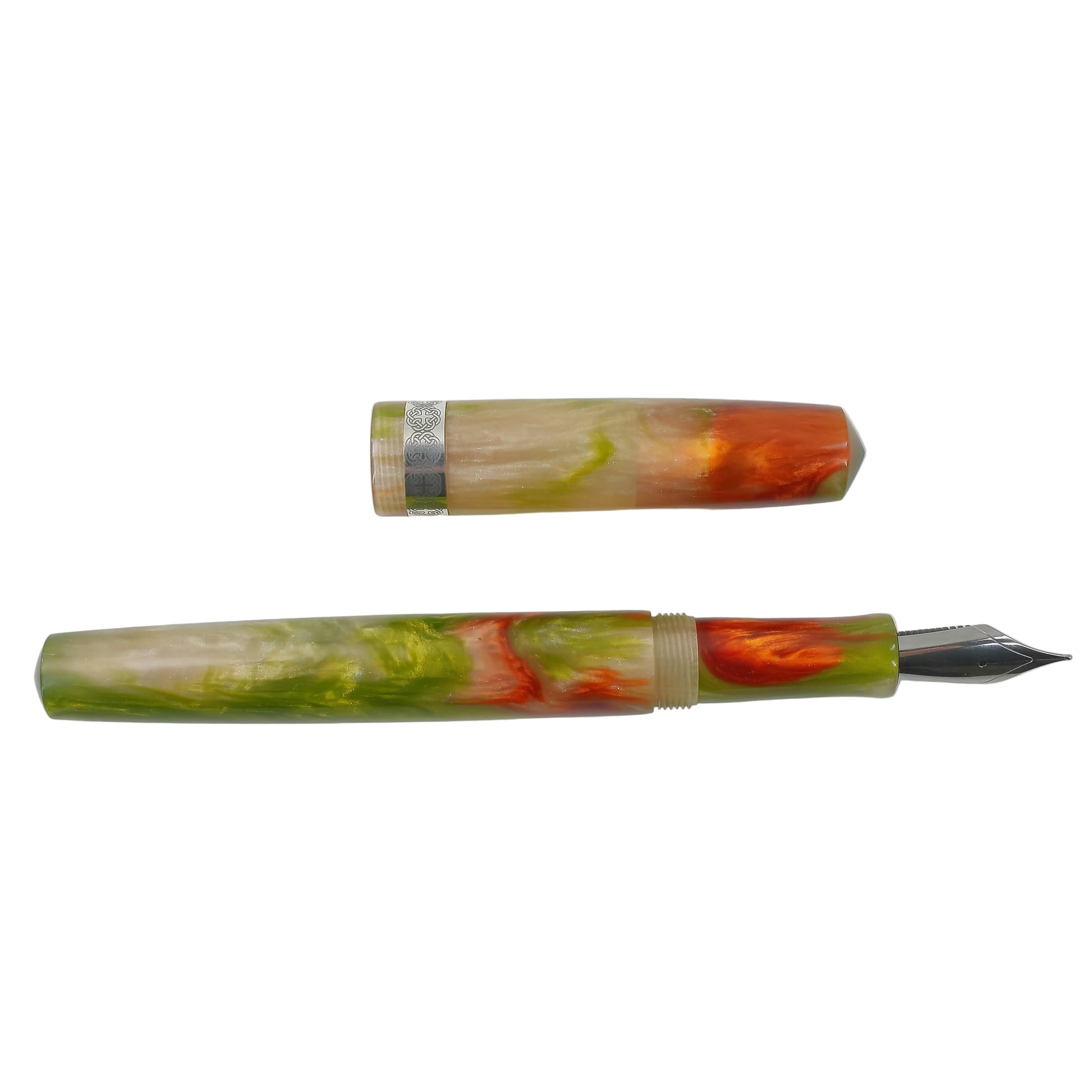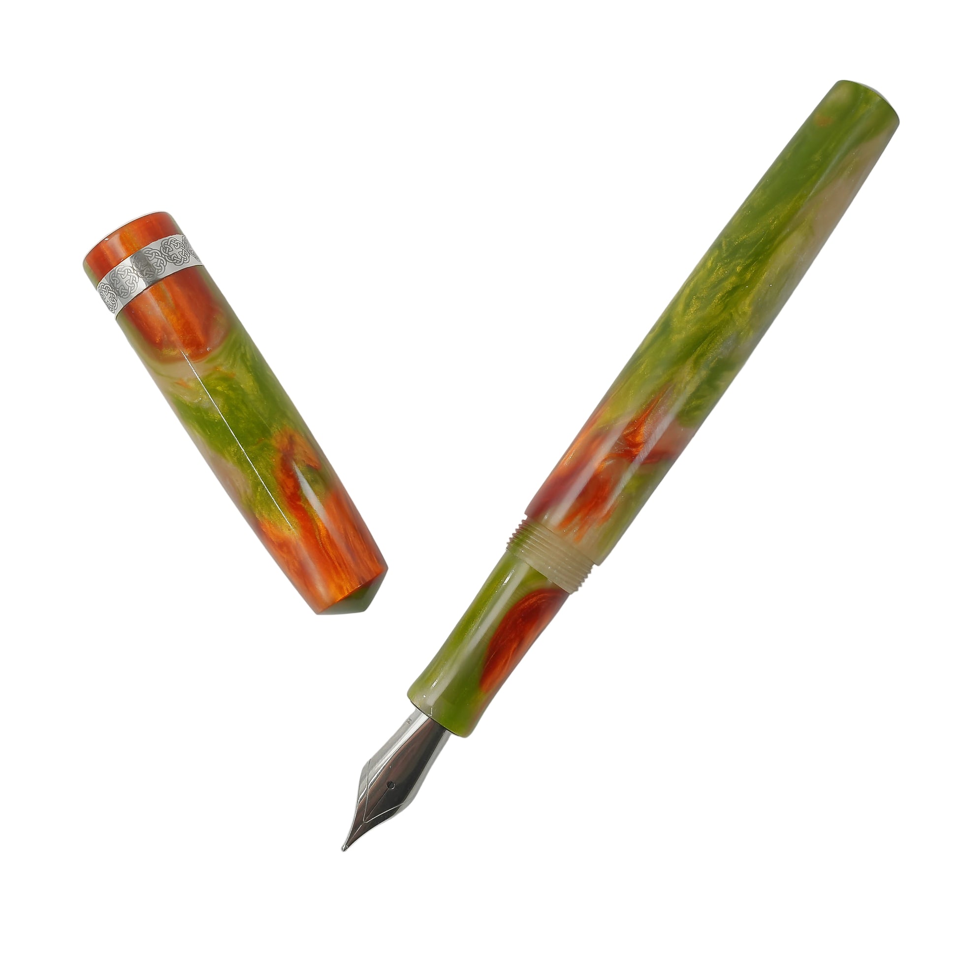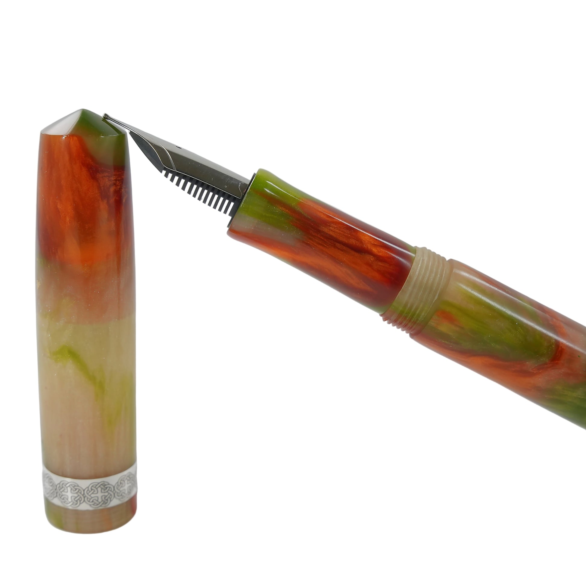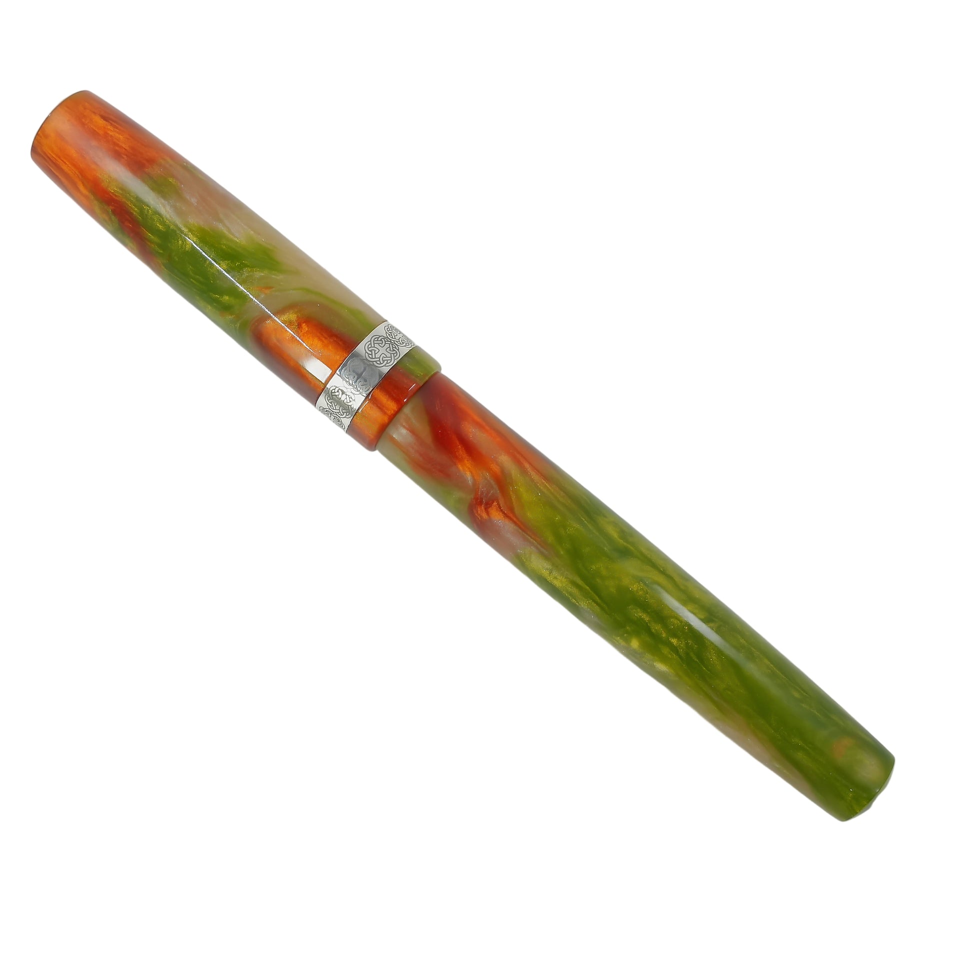 Presenting the stunning 13mm pen from Silver Burl Pens. Part of the Simply Elegant series, this pen is made for writers who appreciate both comfort and style. Its sleek design is perfect for carrying in a pocket or bag, or displaying on a desk. Each pen is carefully crafted to the highest standards and includes a size six Jowo nib and Schmidt K5 ink converter. The polished steel nib is offered in different tip sizes, and other nib options are available.