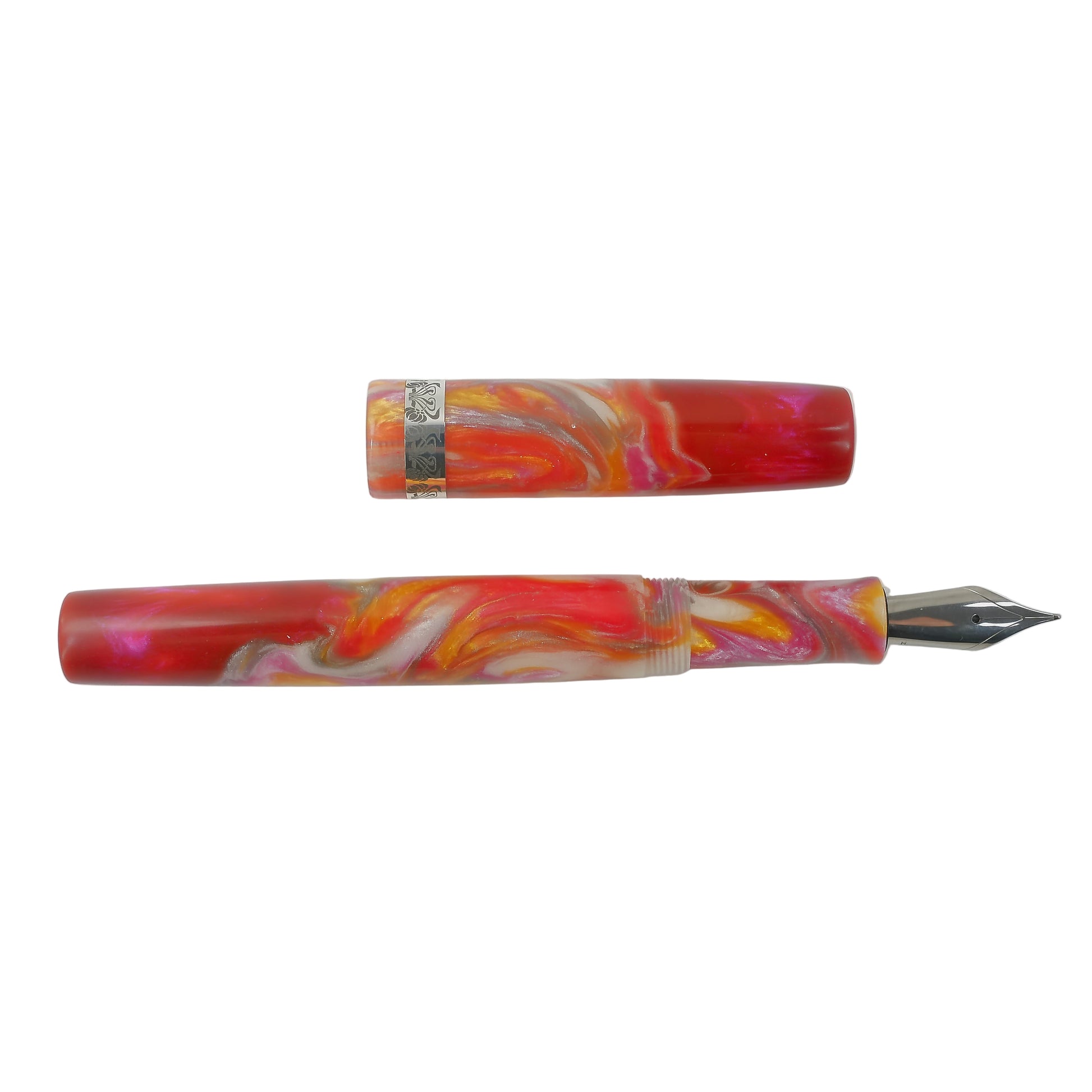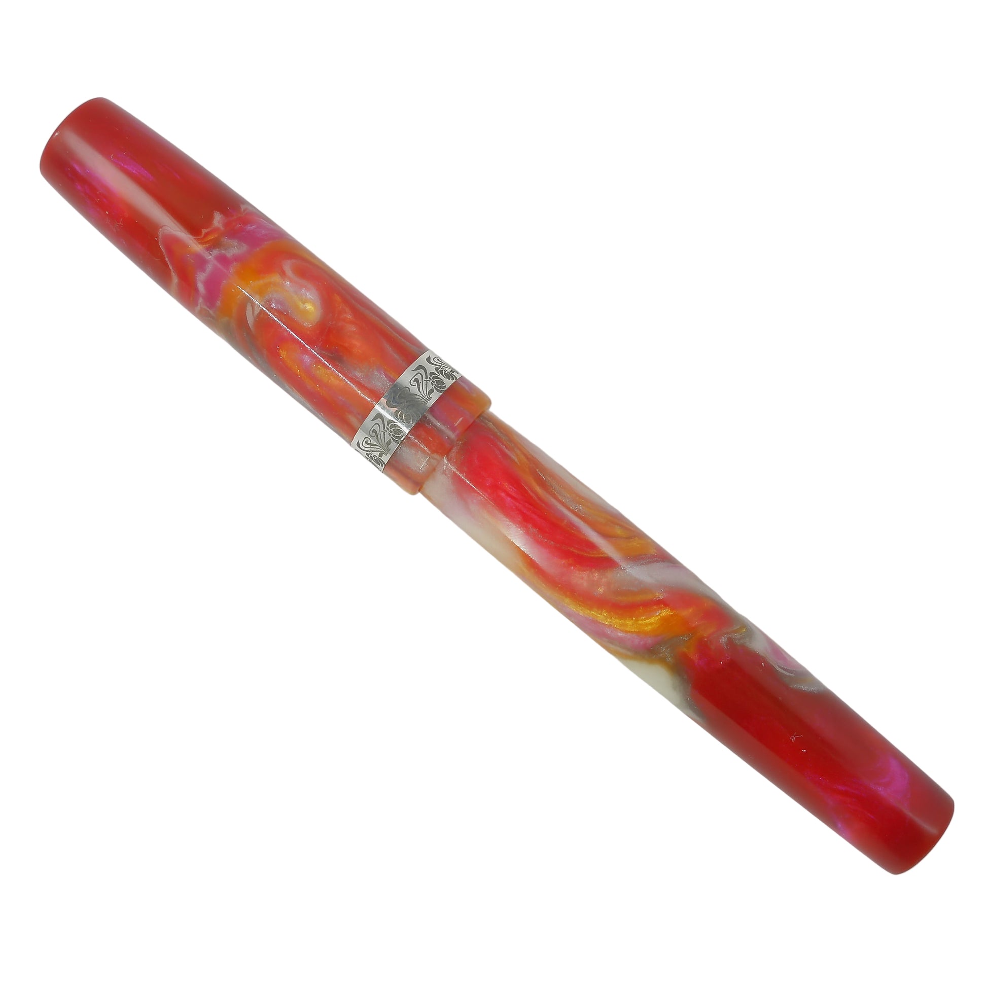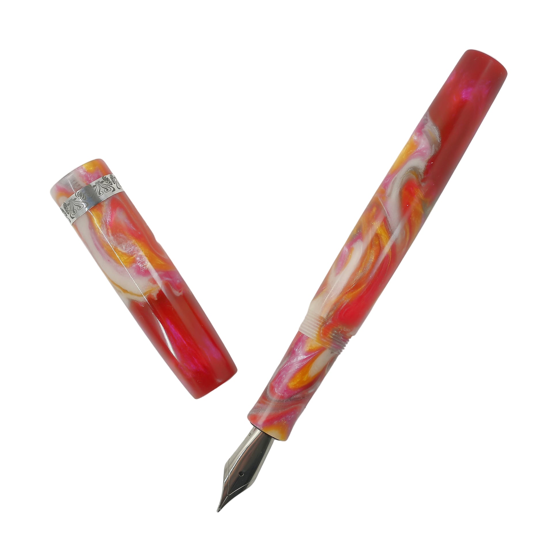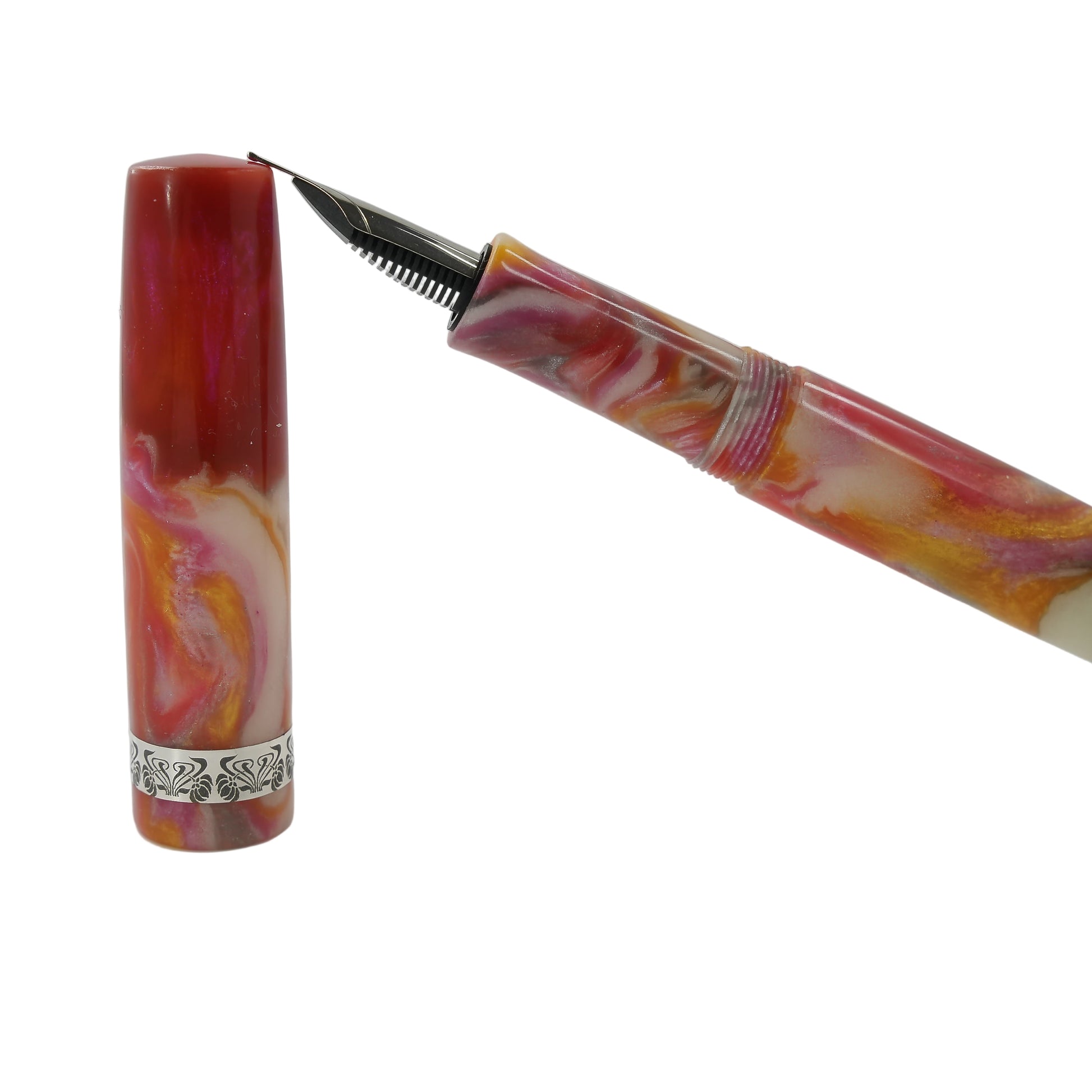 Presenting the stunning 13mm pen from Silver Burl Pens. Part of the Simply Elegant series, this pen is made for writers who appreciate both comfort and style. Its sleek design is perfect for carrying in a pocket or bag, or displaying on a desk. Each pen is carefully crafted to the highest standards and includes a size six Jowo nib and Schmidt K5 ink converter. The polished steel nib is offered in different tip sizes, and other nib options are available.