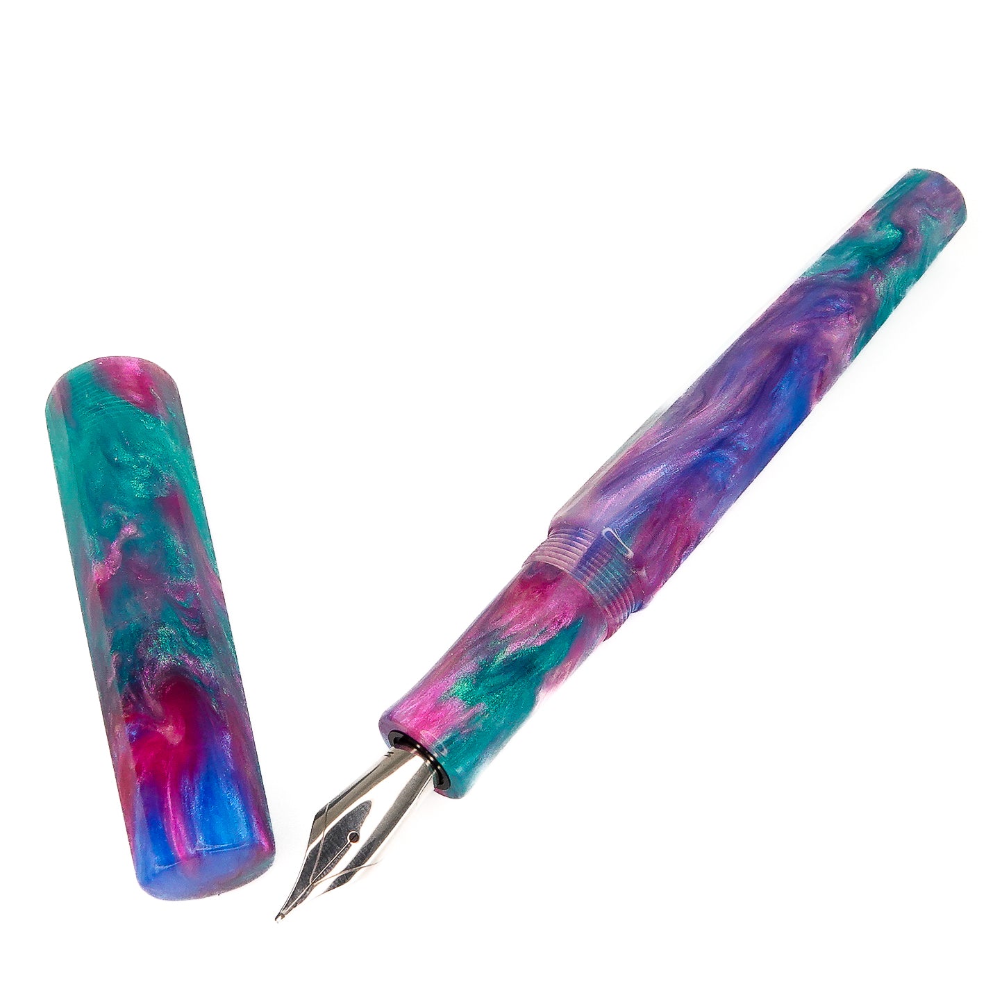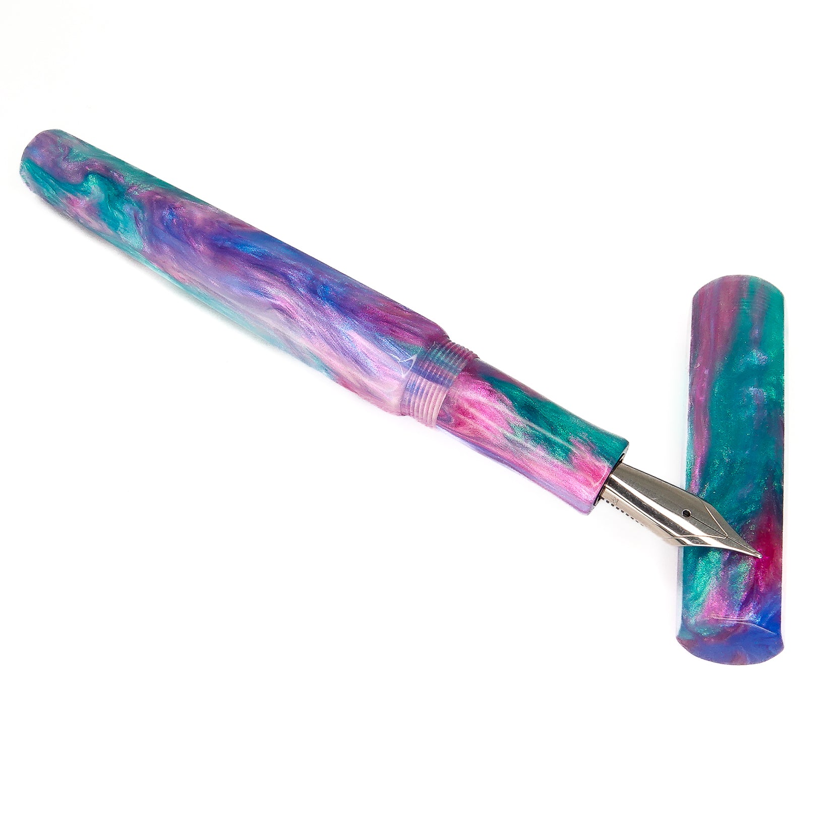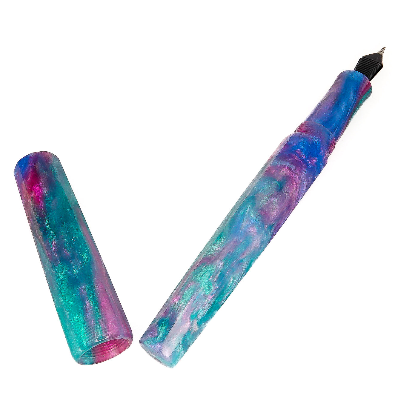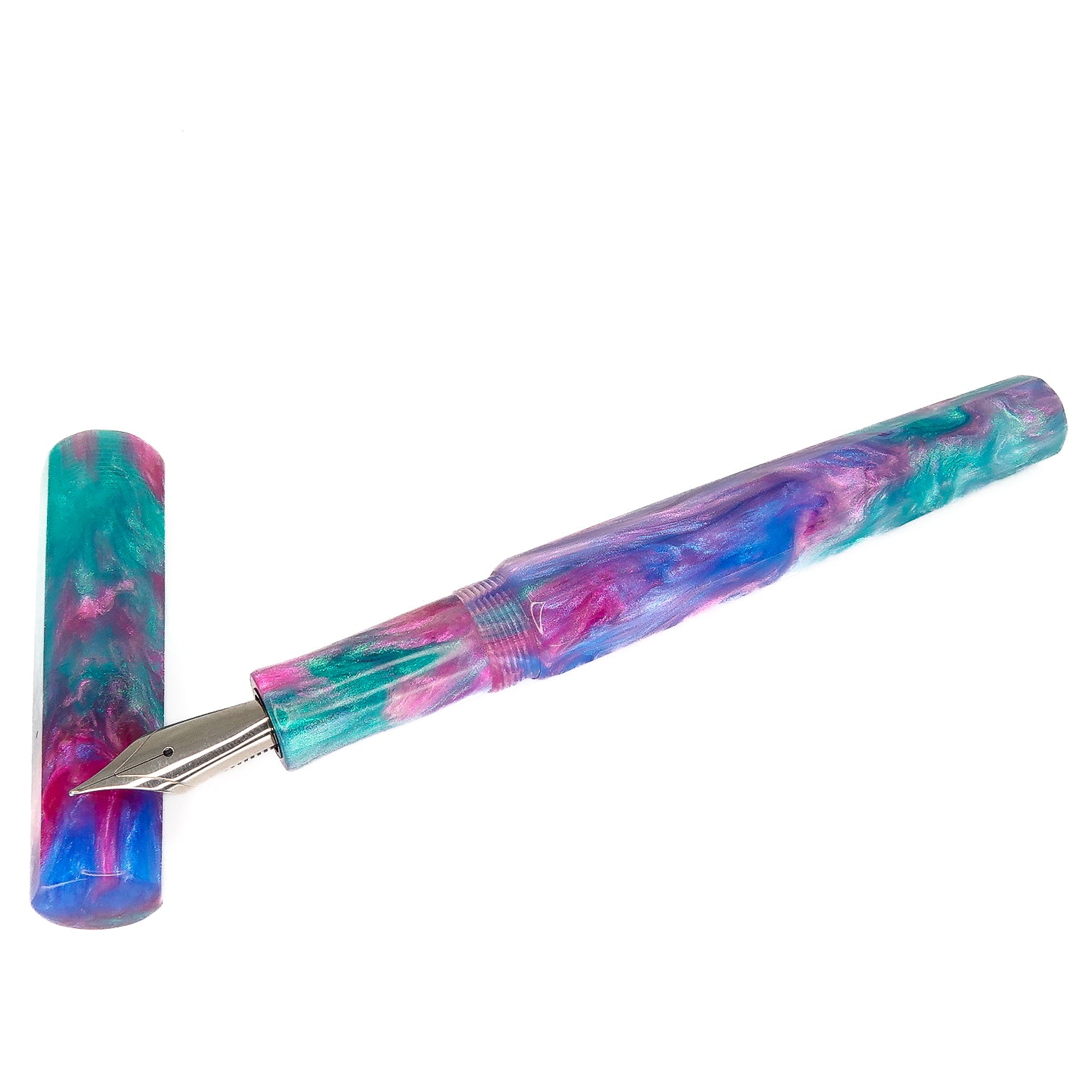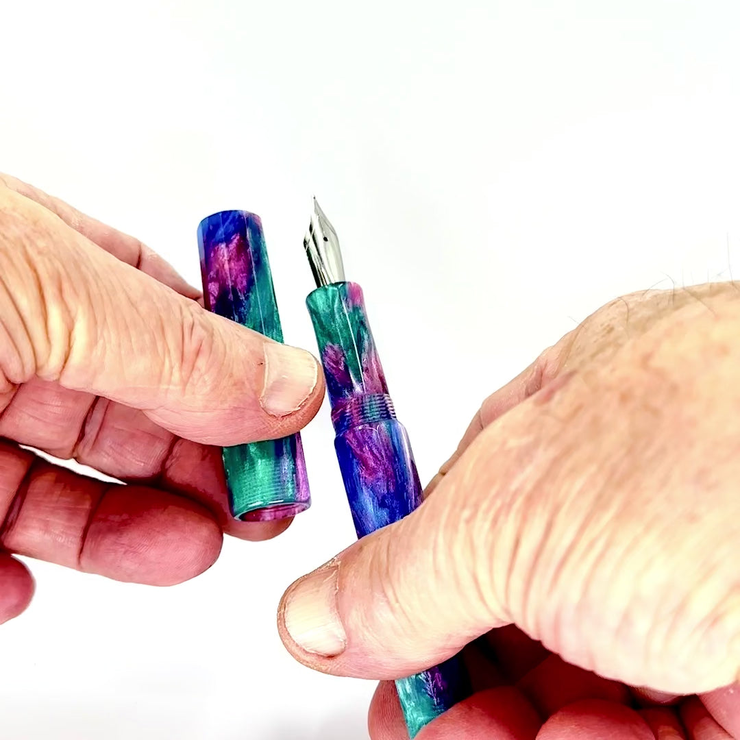 Siren nine sided nonagon the pen has a convex taper to both the barrel and the cap, this series of pens were created to satisfy the discerning writer with a no frills pen that is not only comfortable in the hand but is also easy to slip into a pocket or bag but is equally at home sat on a desk, this range of pens come in various shapes and sizes all finished to a very high standard this pen is fitted with a size six Jowo nib and Schmidt K5 ink converter. Comes standard with a polished steel nib in the tip size of your choosing. Other nibs are available; please contact john@silverburlpens.com to discuss alternatives and prices. I`ll be pleased to offer advice.