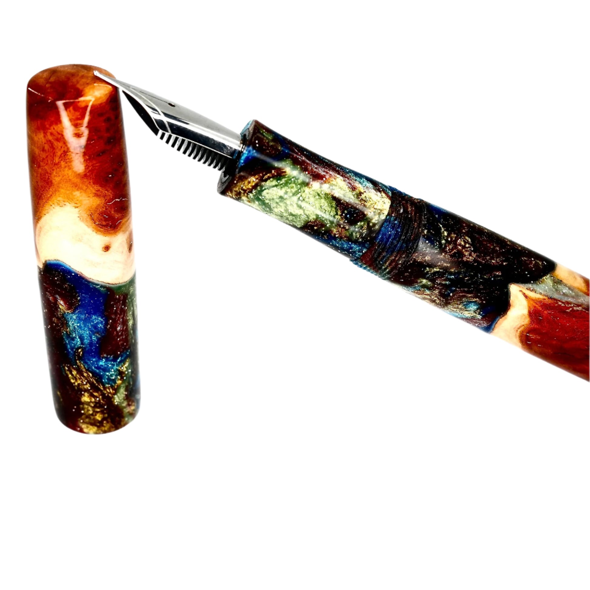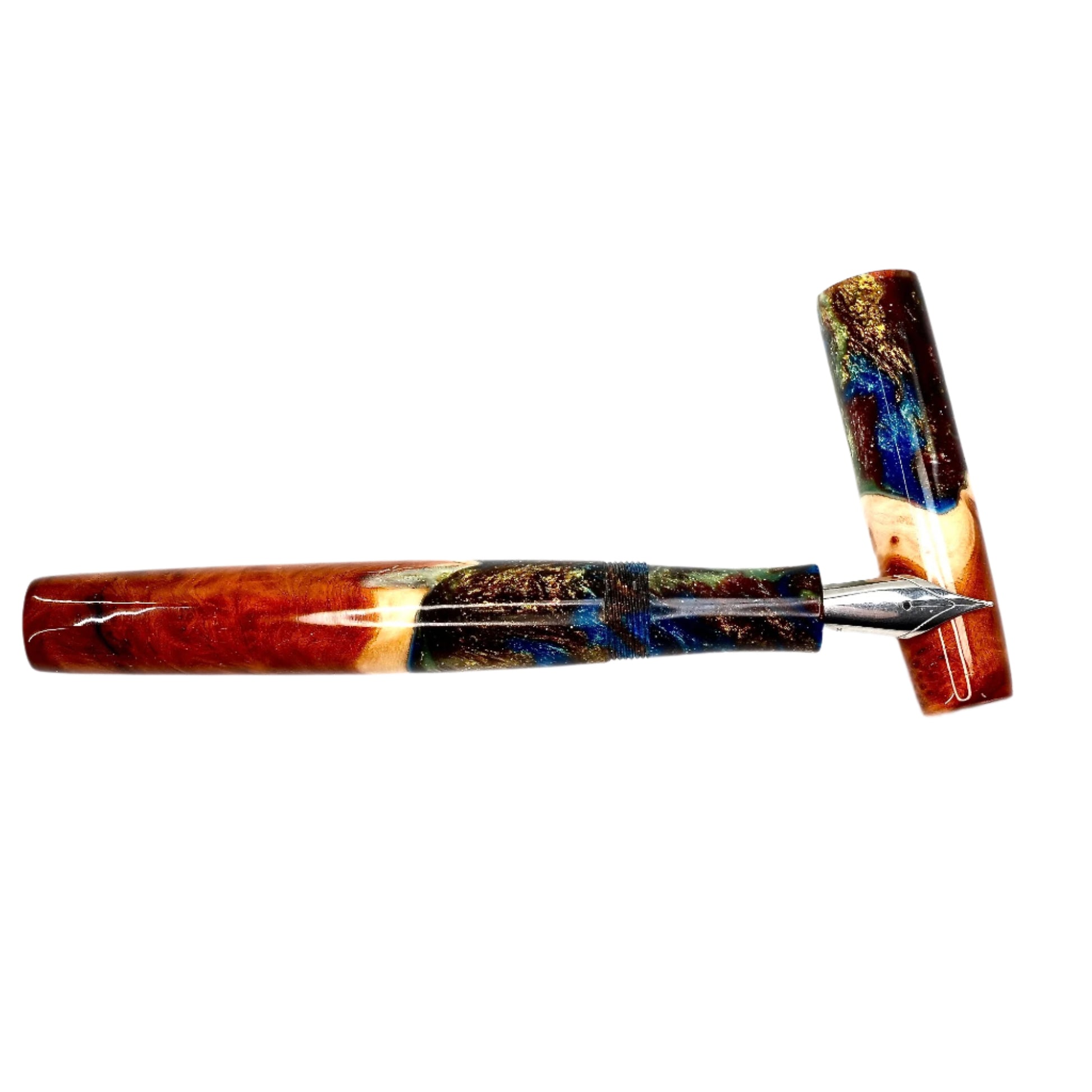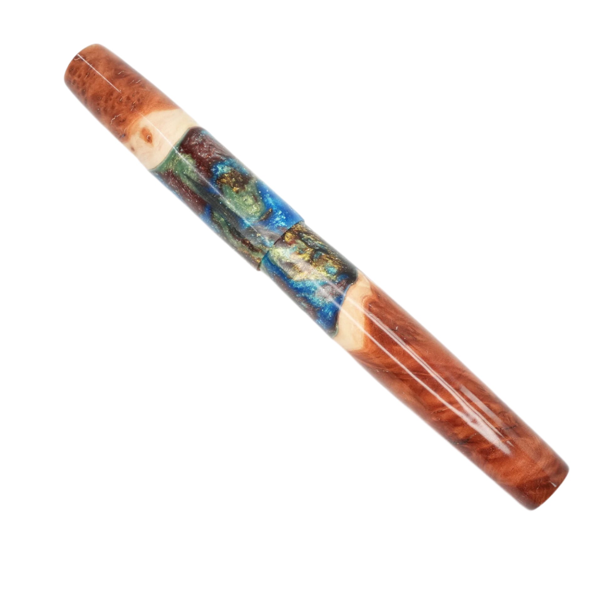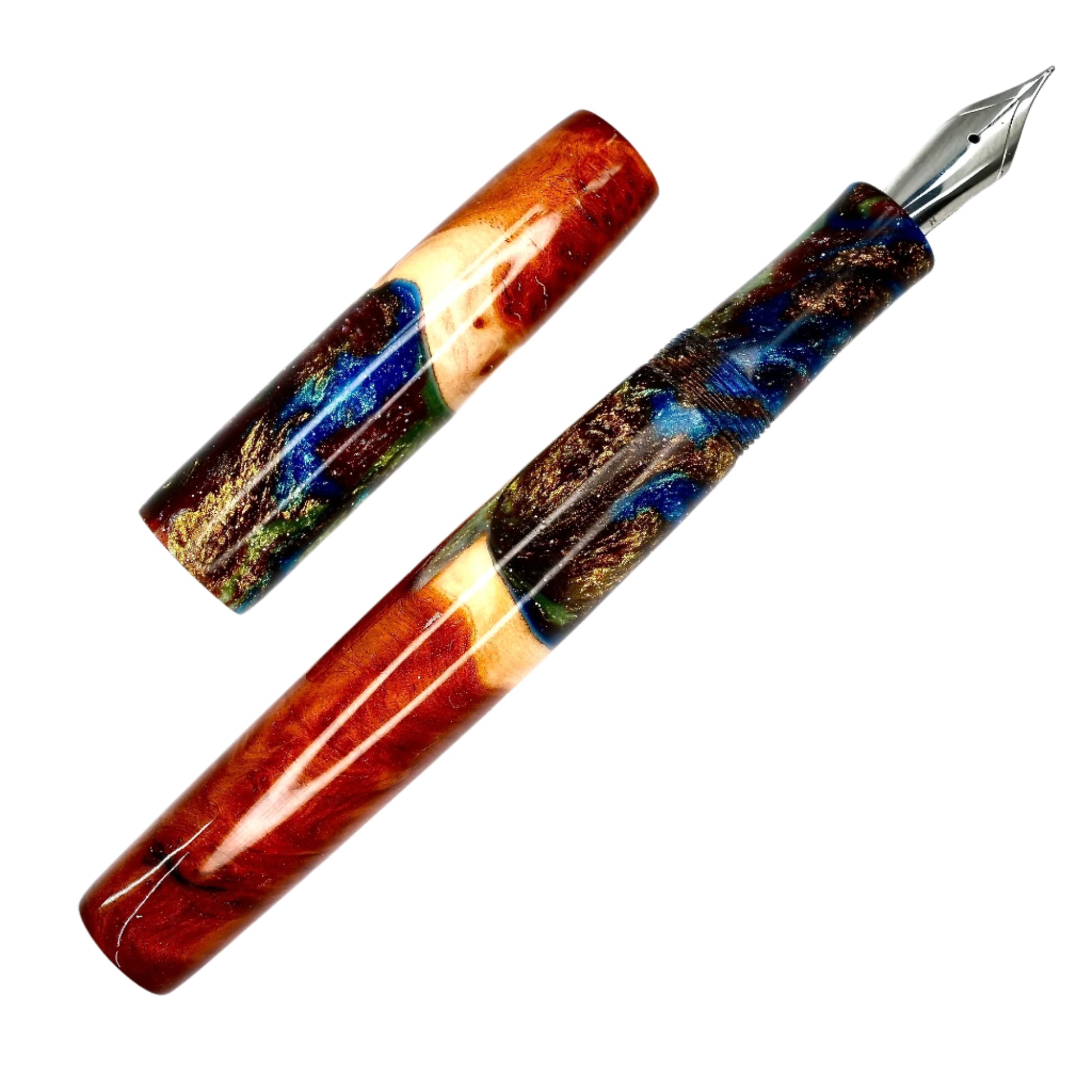 This beautiful Red Mallee Burl wood offers a completely unique and impressive appearance, each pen incorporates the woods natural identity and features with no two ever the same. This pen is one of a kind, completely hand turned, including the grip / nib section and triple start thread, all done by myself in my workshop. No pen kit has been used. The level of craftmanship, time involved and quality is reflected in the price. I never make two pens the same.
