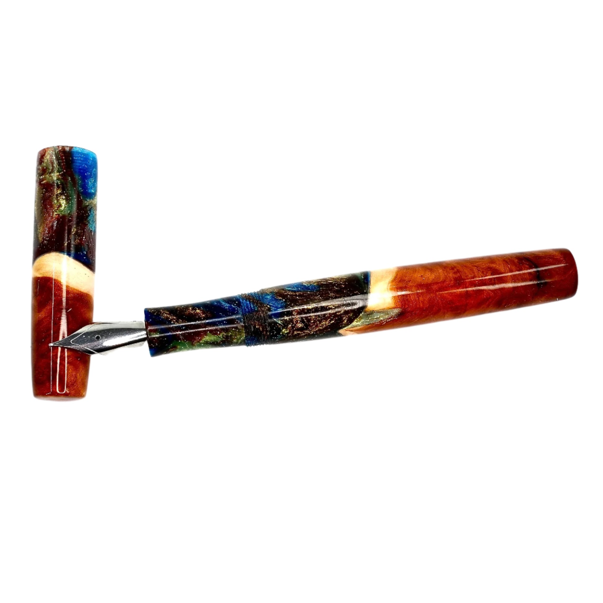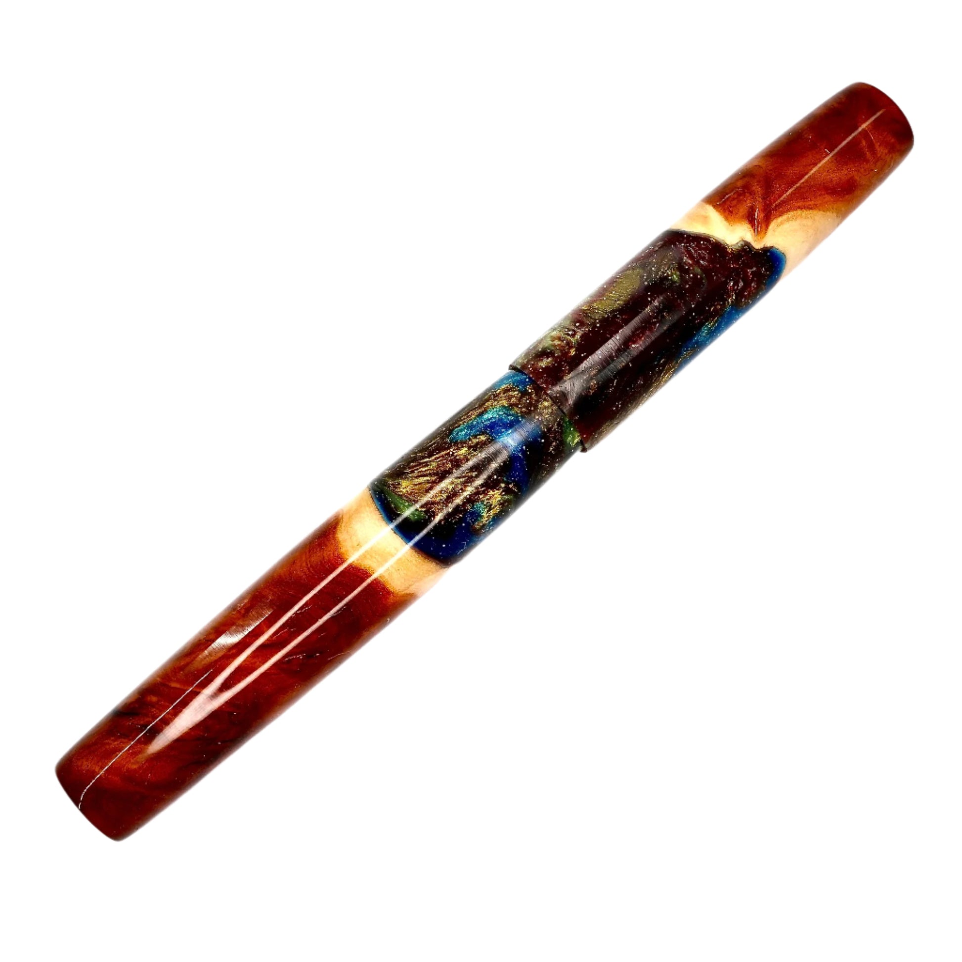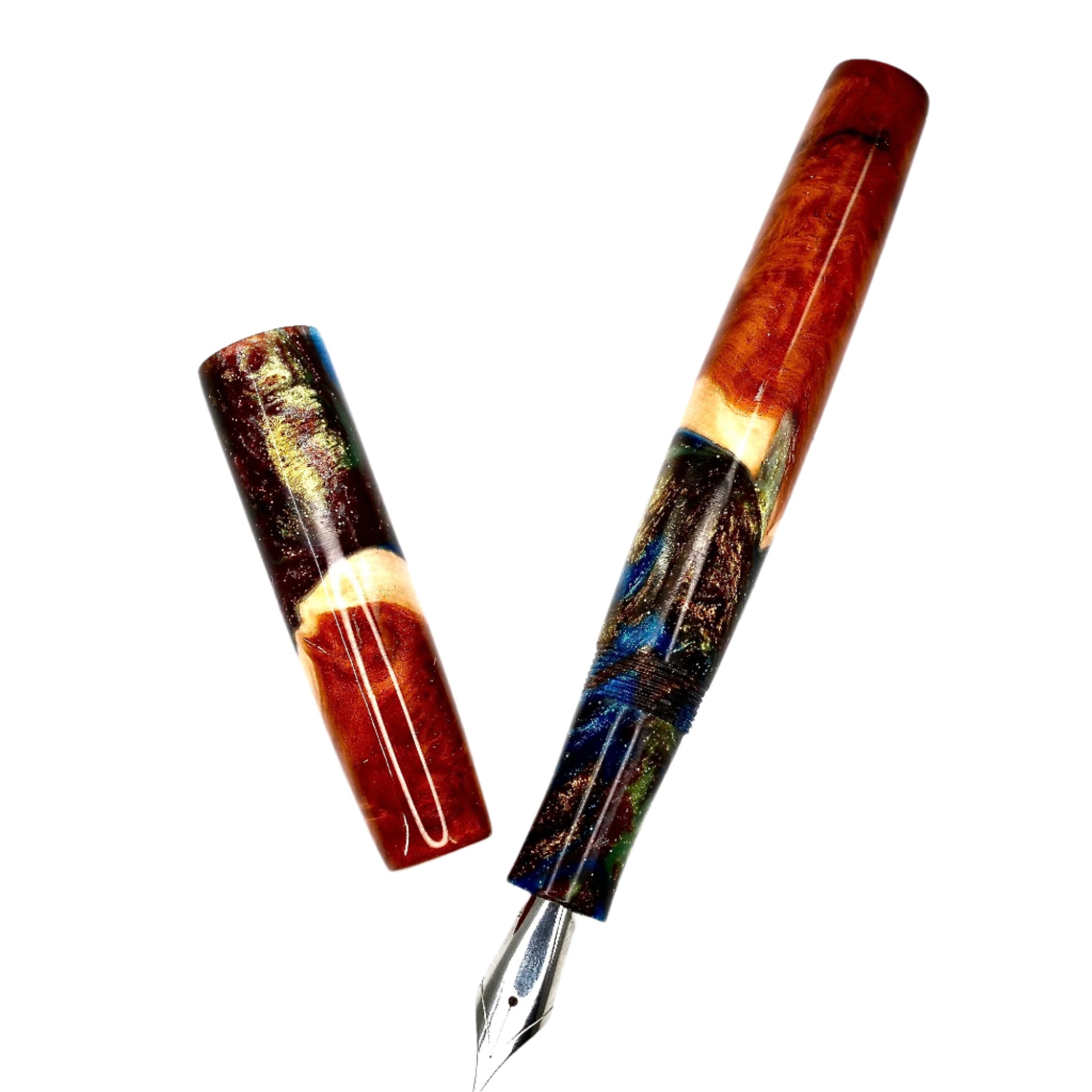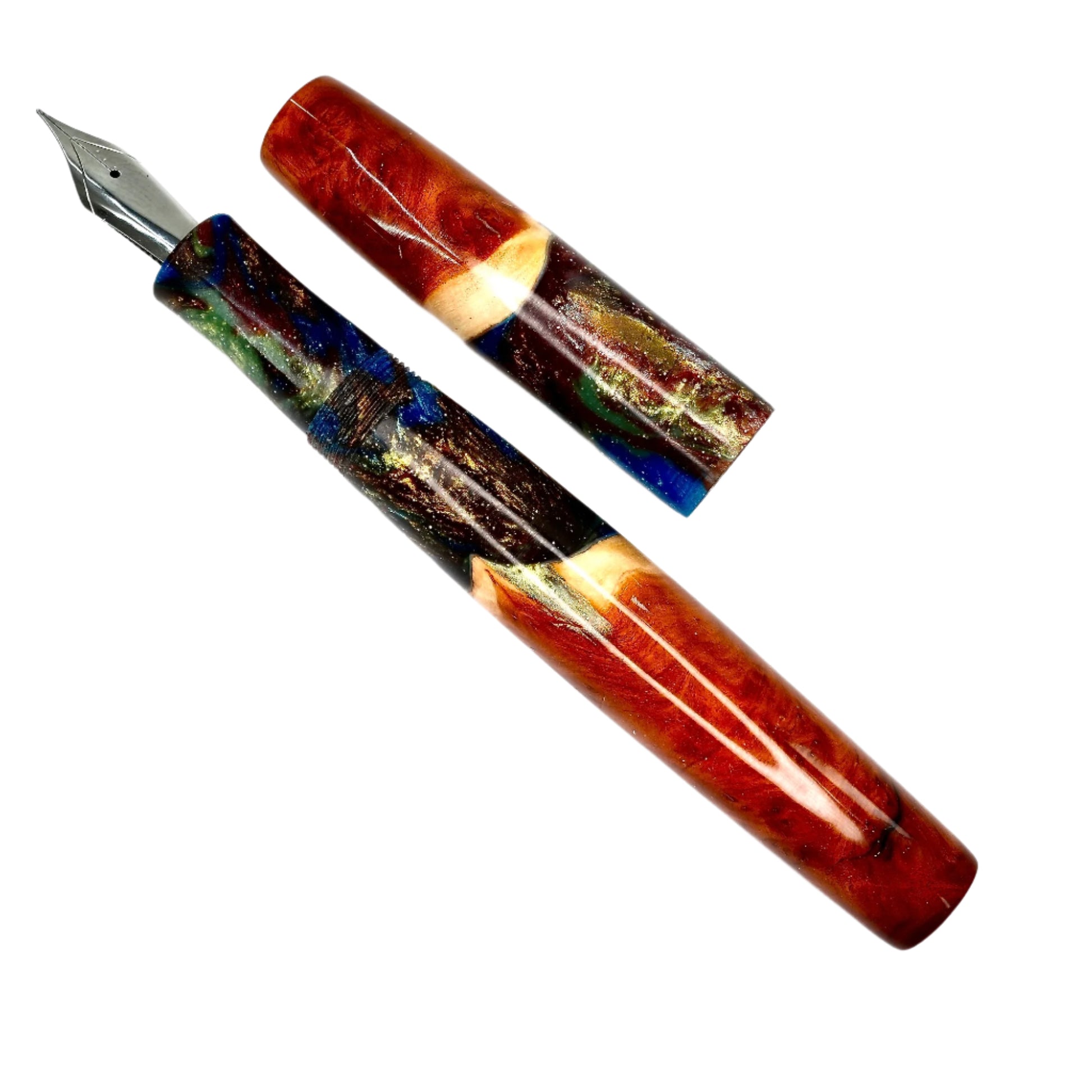 This beautiful Red Mallee Burl wood offers a completely unique and impressive appearance, each pen incorporates the woods natural identity and features with no two ever the same. This pen is one of a kind, completely hand turned, including the grip / nib section and triple start thread, all done by myself in my workshop. No pen kit has been used. The level of craftmanship, time involved and quality is reflected in the price. I never make two pens the same.