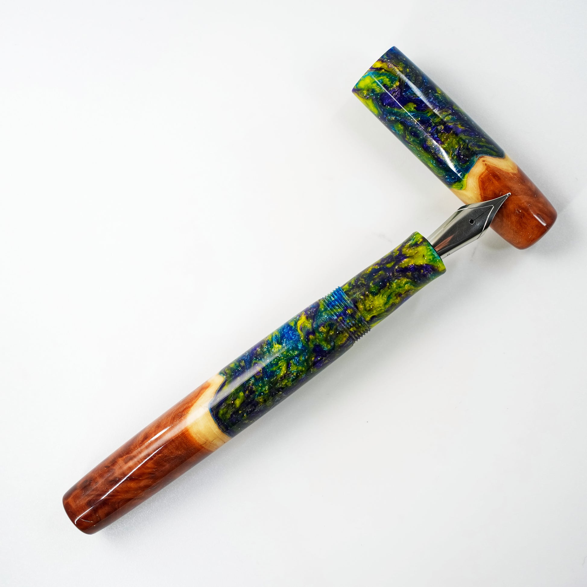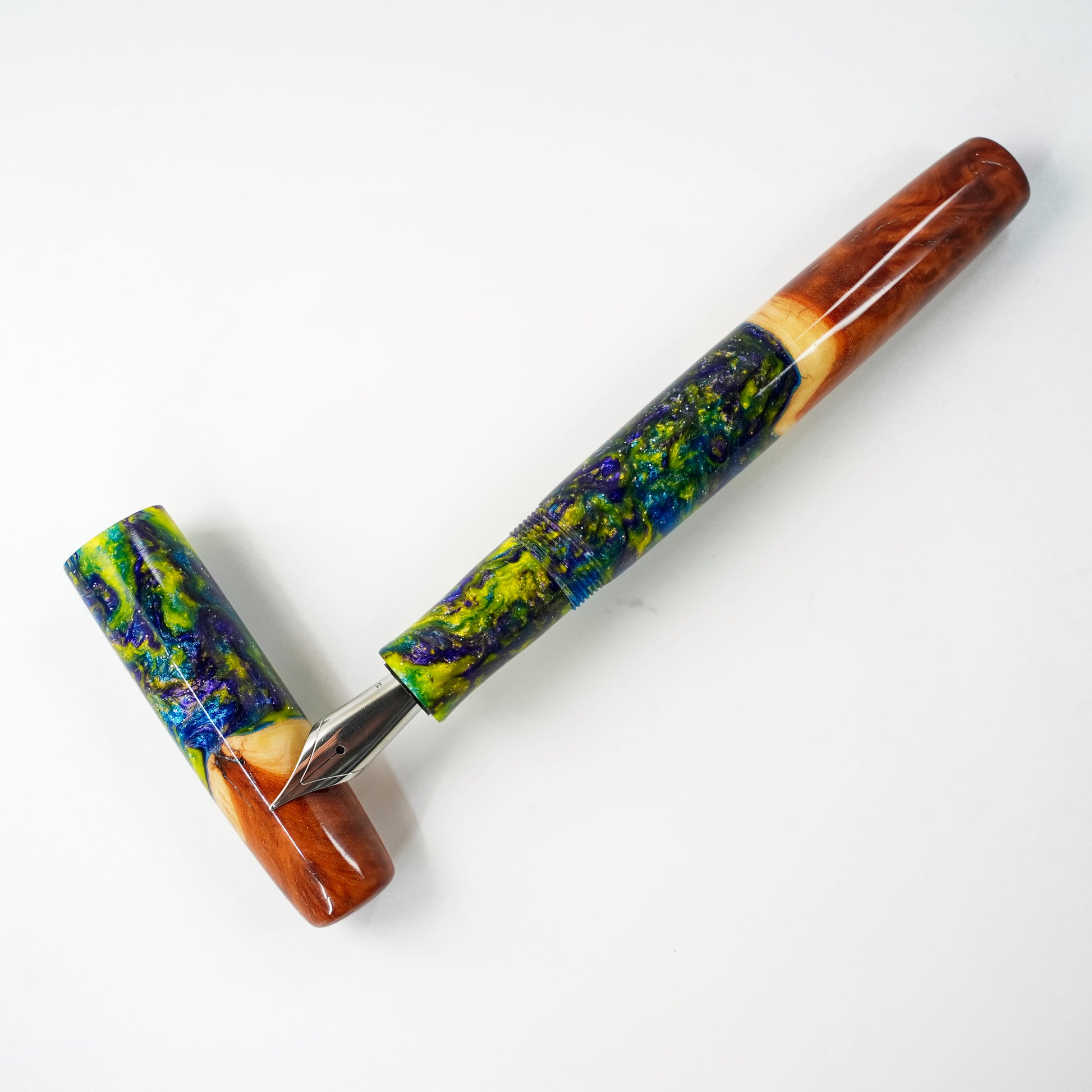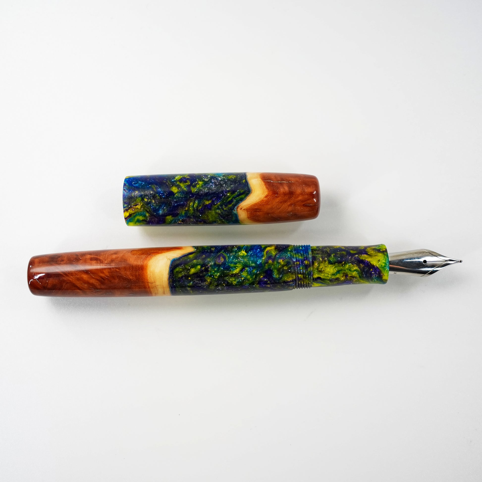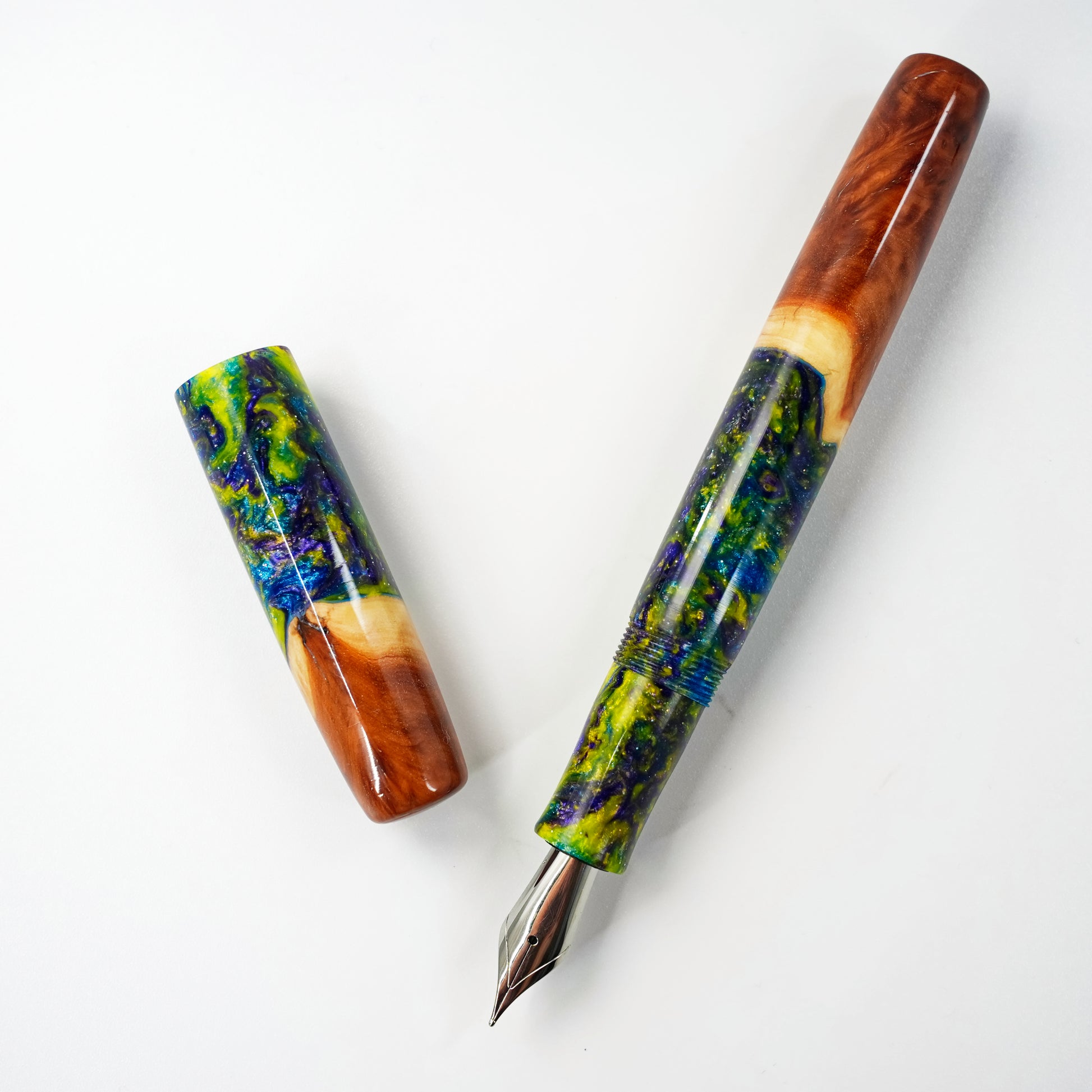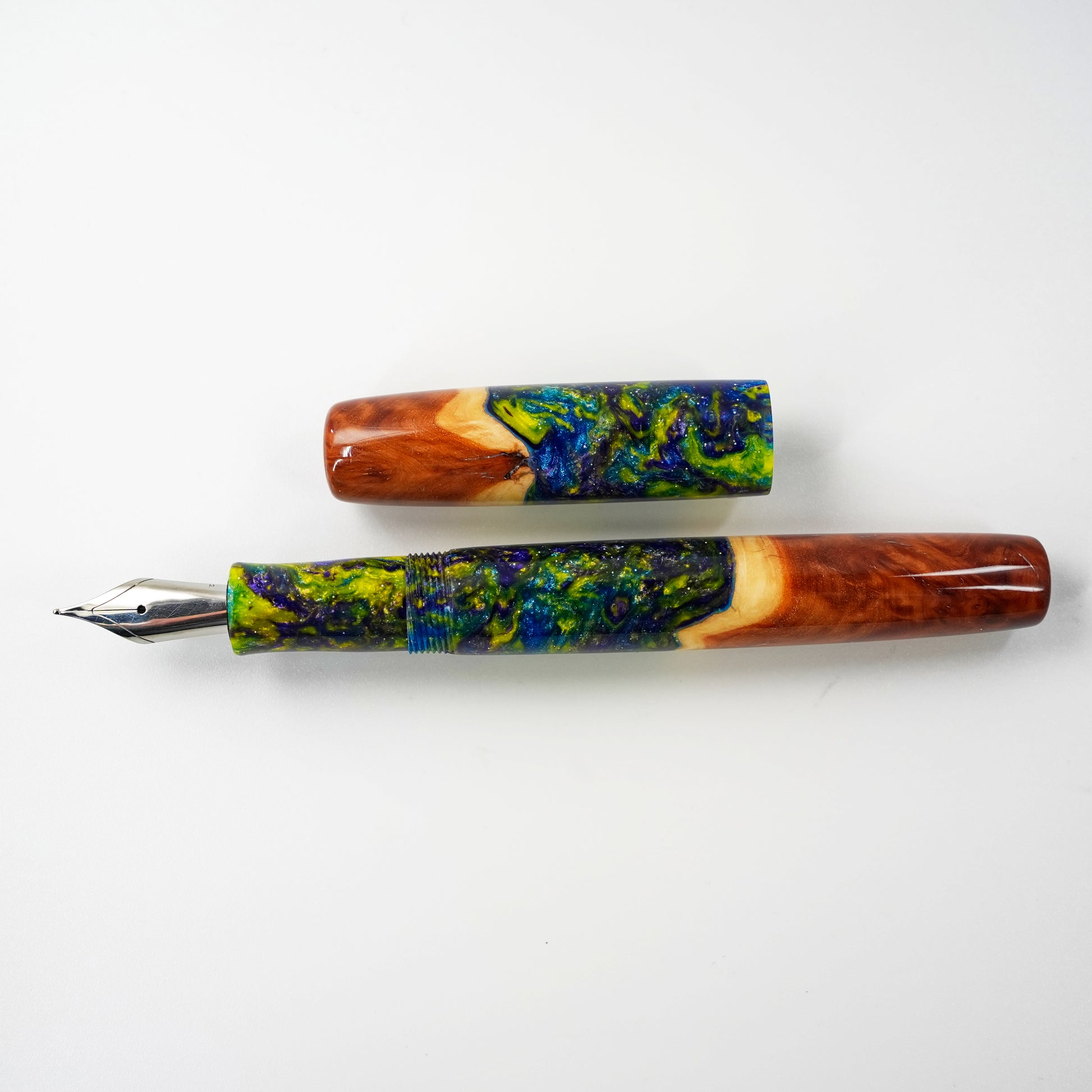 This beautiful Red Mallee Burl wood offers a completely unique and impressive appearance, each pen incorporates the woods natural identity and features with no two ever the same. This pen is one of a kind, completely hand turned, including the grip / nib section and triple start thread, all done by myself in my workshop. No pen kit has been used. The level of craftmanship, time involved and quality is reflected in the price. I never make two pens the same.