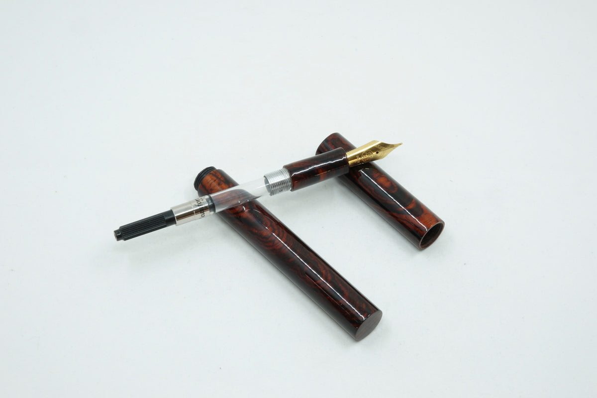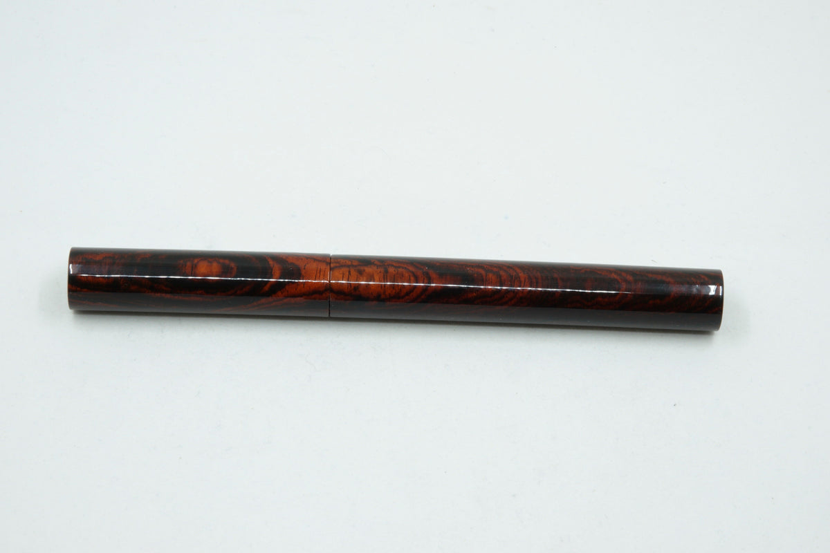This South American Cocobolo Fountain Pen is handmade and totally made by myself in my workshop. No pen kit has been used, and the level of craftmanship, time involved and quality is reflected in the price. I never make two pens the same, so each one is unique and has a beautiful and detailed appearance.
